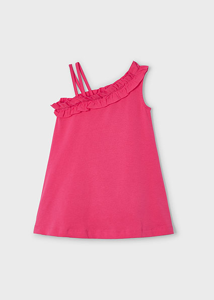 Abitino prendisole monospalla e volants MAYORAL per bambina color PEONIA