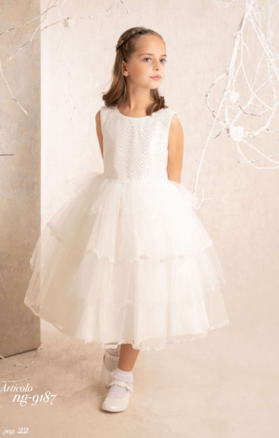 Abito cerimonia NAZARENO GABRIELLI per bambina con tripla balza in tulle e corpino paillettes