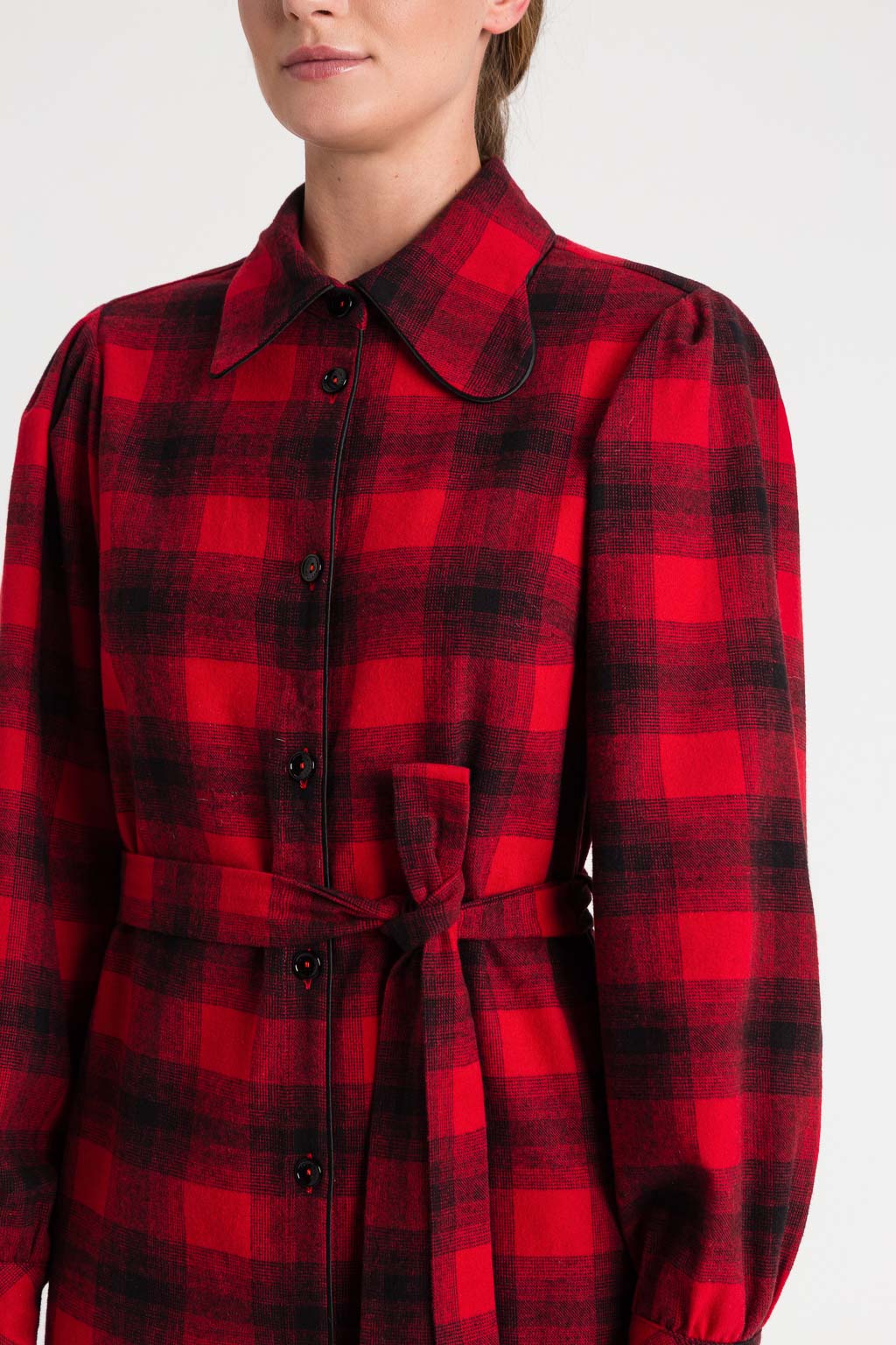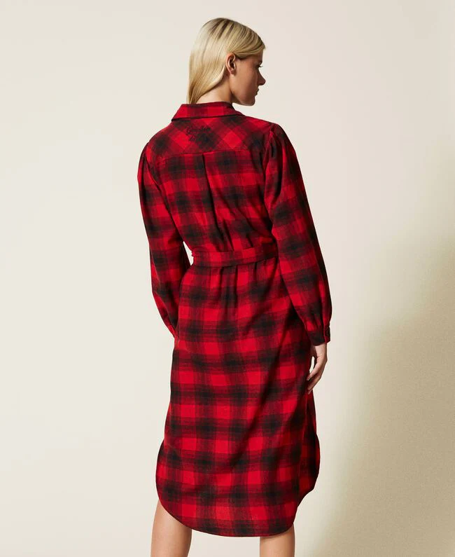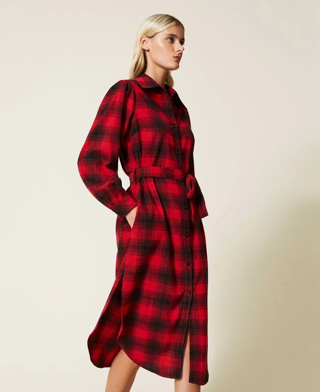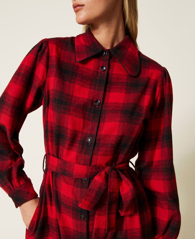 Abito chemisier a disegno check con colletto, chiusura con bottoni, tasche ai fianchi, cintura abbinata. Questo articolo fa parte della capsule collection Gioiella de Twin.