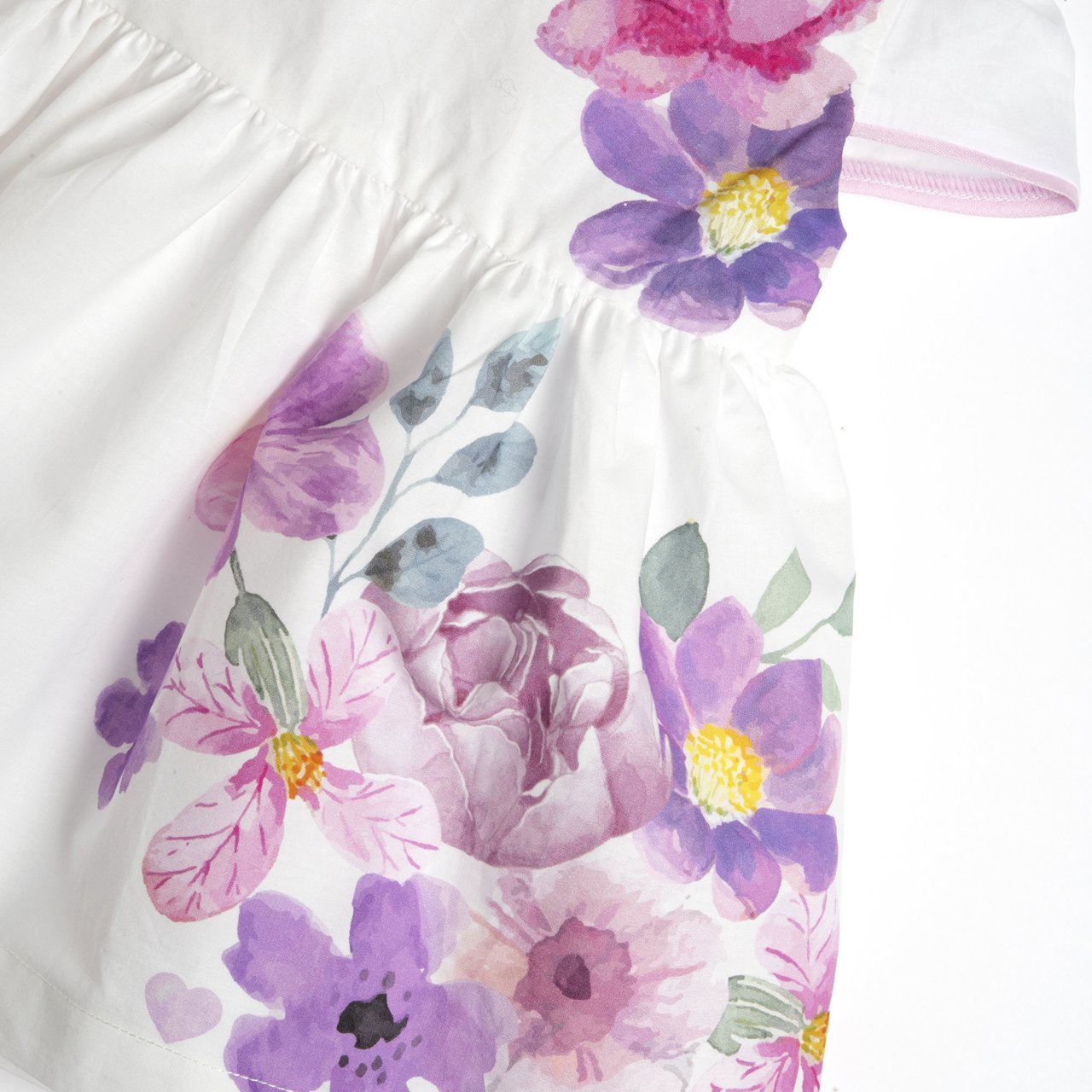Abito CHICCO cerimonia per bambina color bianco con fantasia floreale lilla e rosa