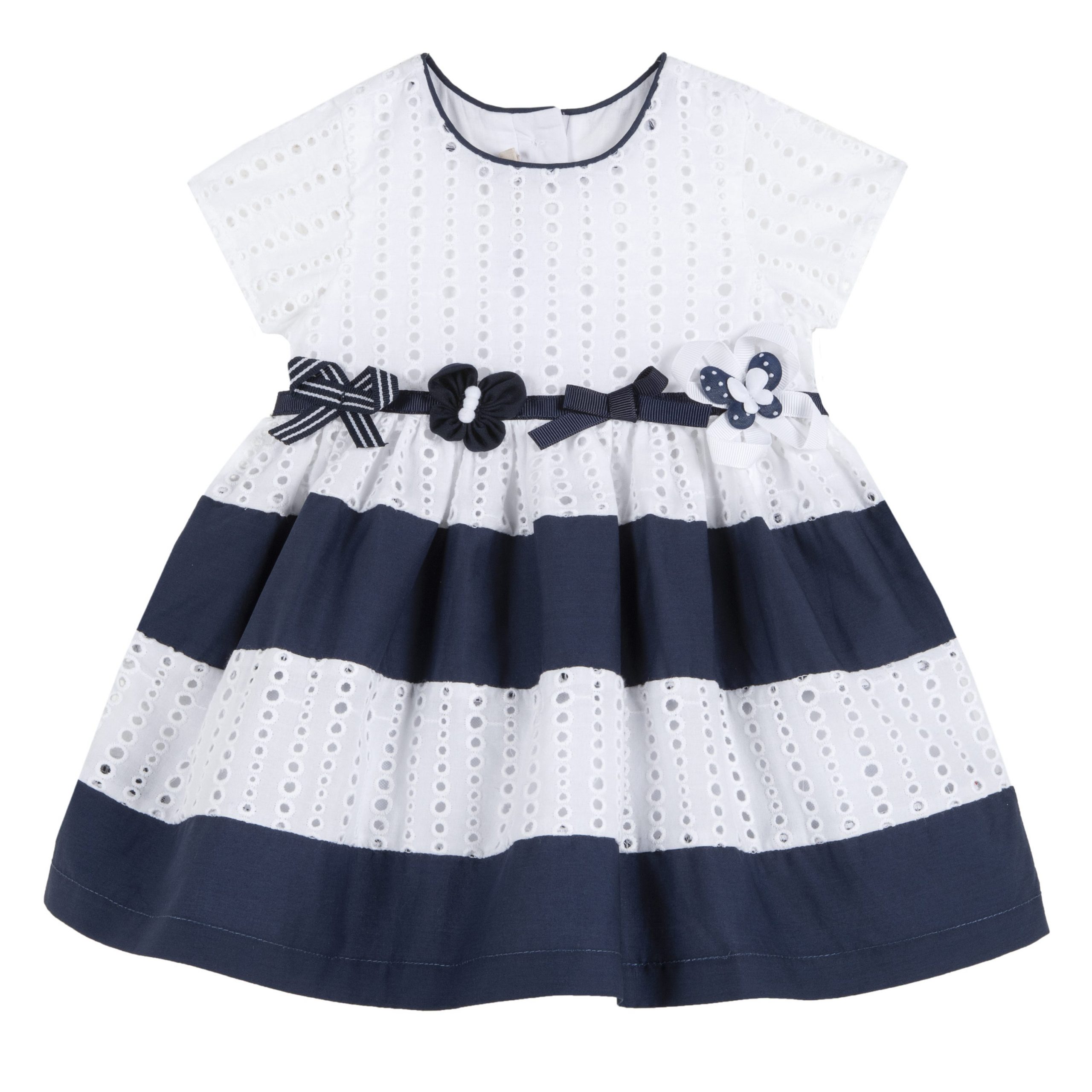 Abito CHICCO per neonata in cotone color bianco e blu in sangallo