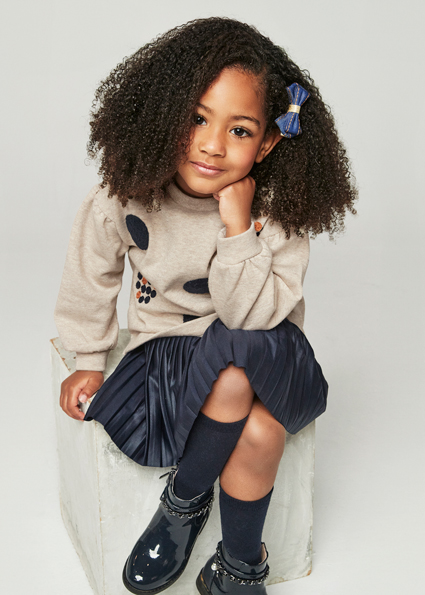 Abito invernale MAYORAL per bambina con scamiciato blu e maglioncino beige lurex