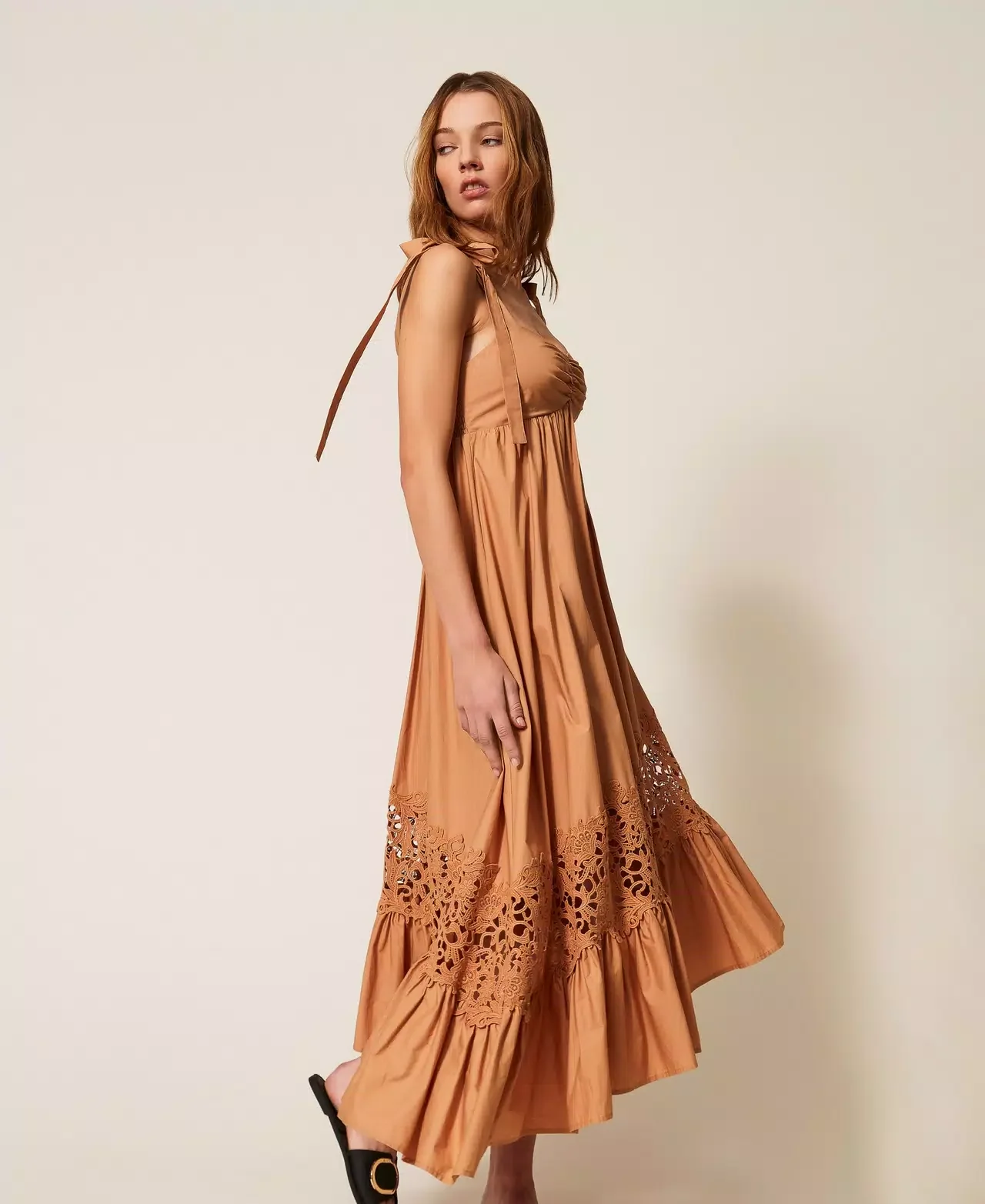 Abito longuette in popeline a balze Twinset