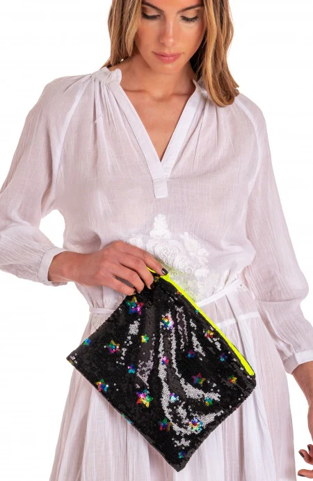 La modella รจ alta 180cm e indossa una taglia 42.