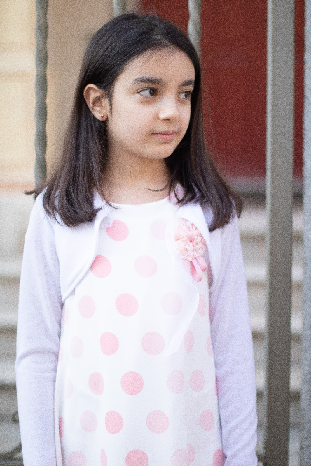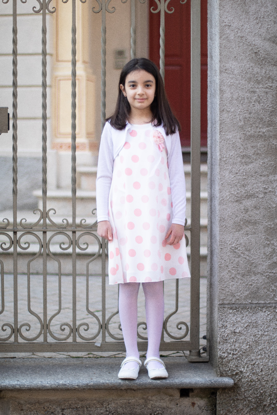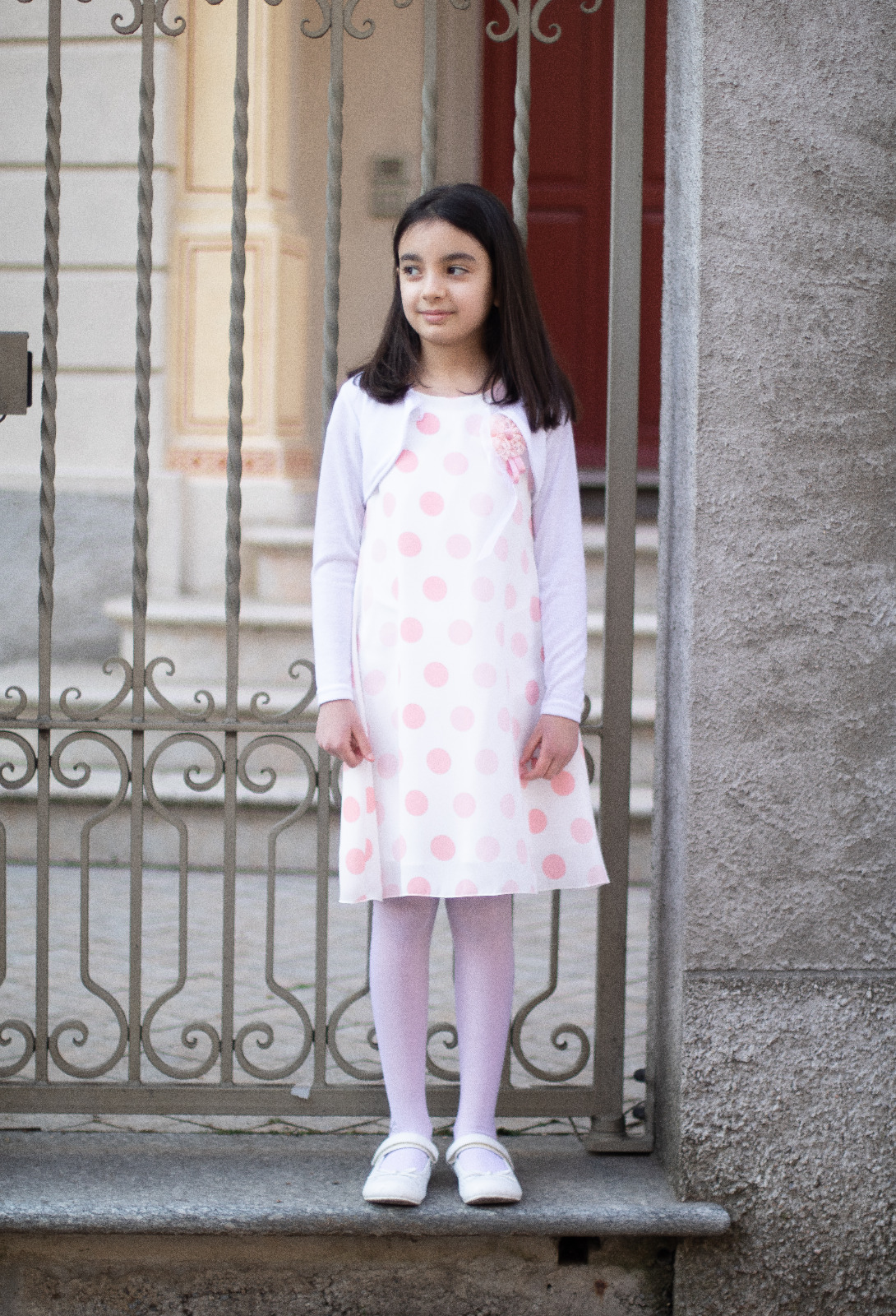 Abito MARTA MARZOTTO estivo per ragazza bianco con pois salmone