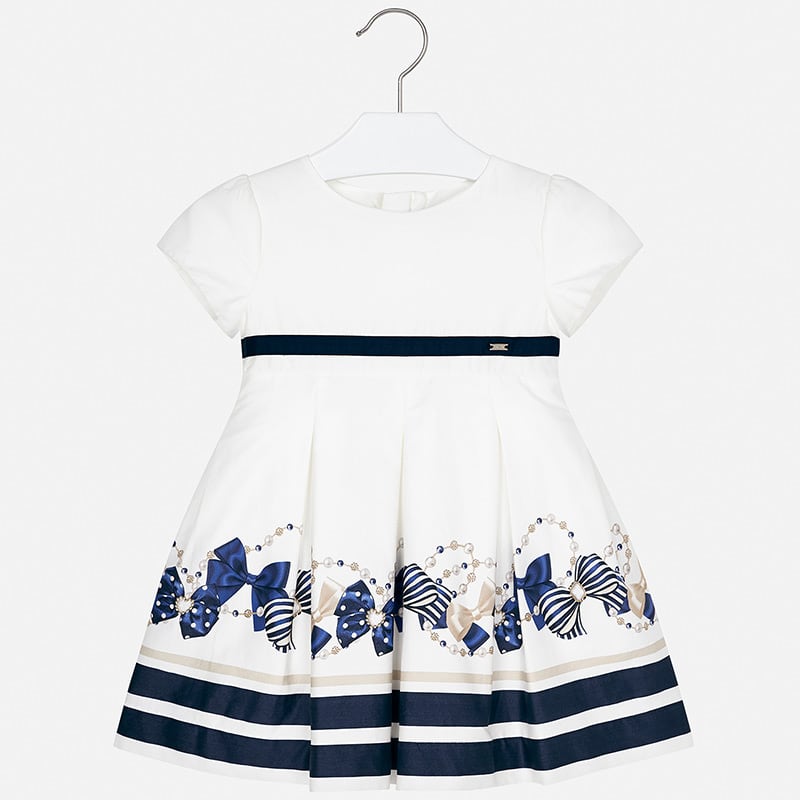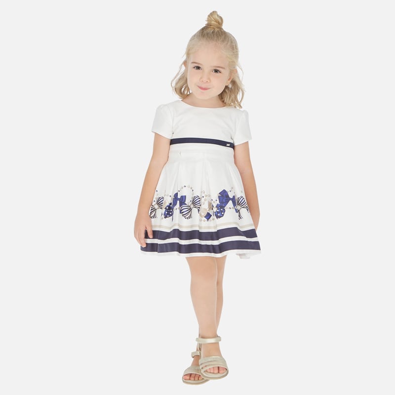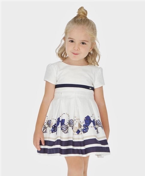 Abito MAYORAL, mezza manica con graziose stampe con fiocchetti oro e blu