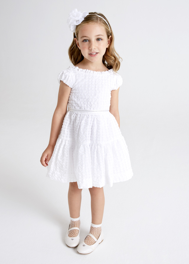 Abito MAYORAL per bambina in tessuto bianco goffrato per bambina