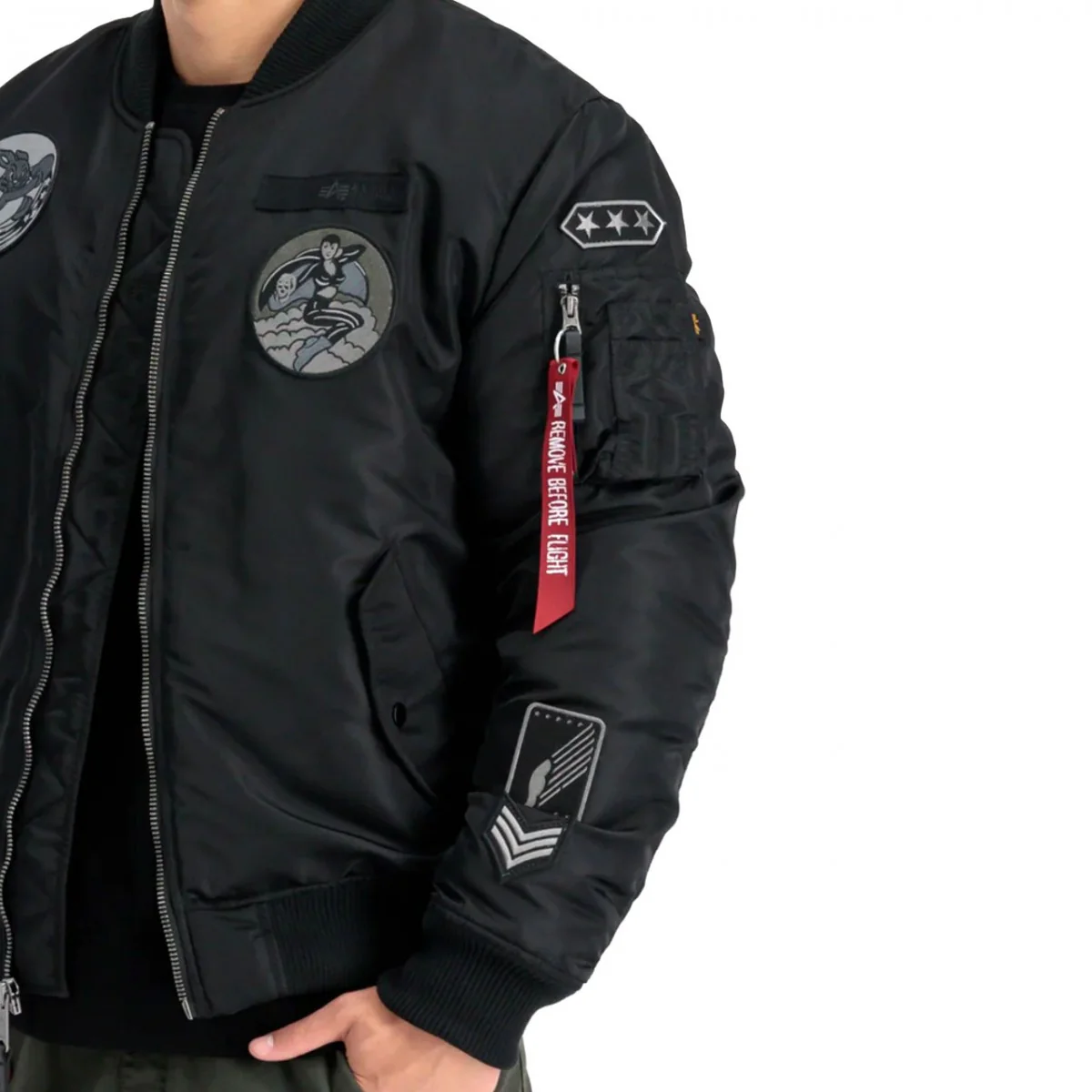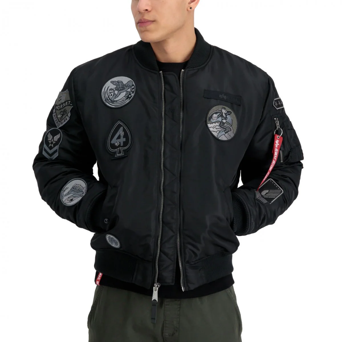 Alpha Industries uomo giubbino MA-1 Patch 138104AI Nero BOMBER CON PATCH. Vestibilitร comoda. Composizione: 100% nylon.