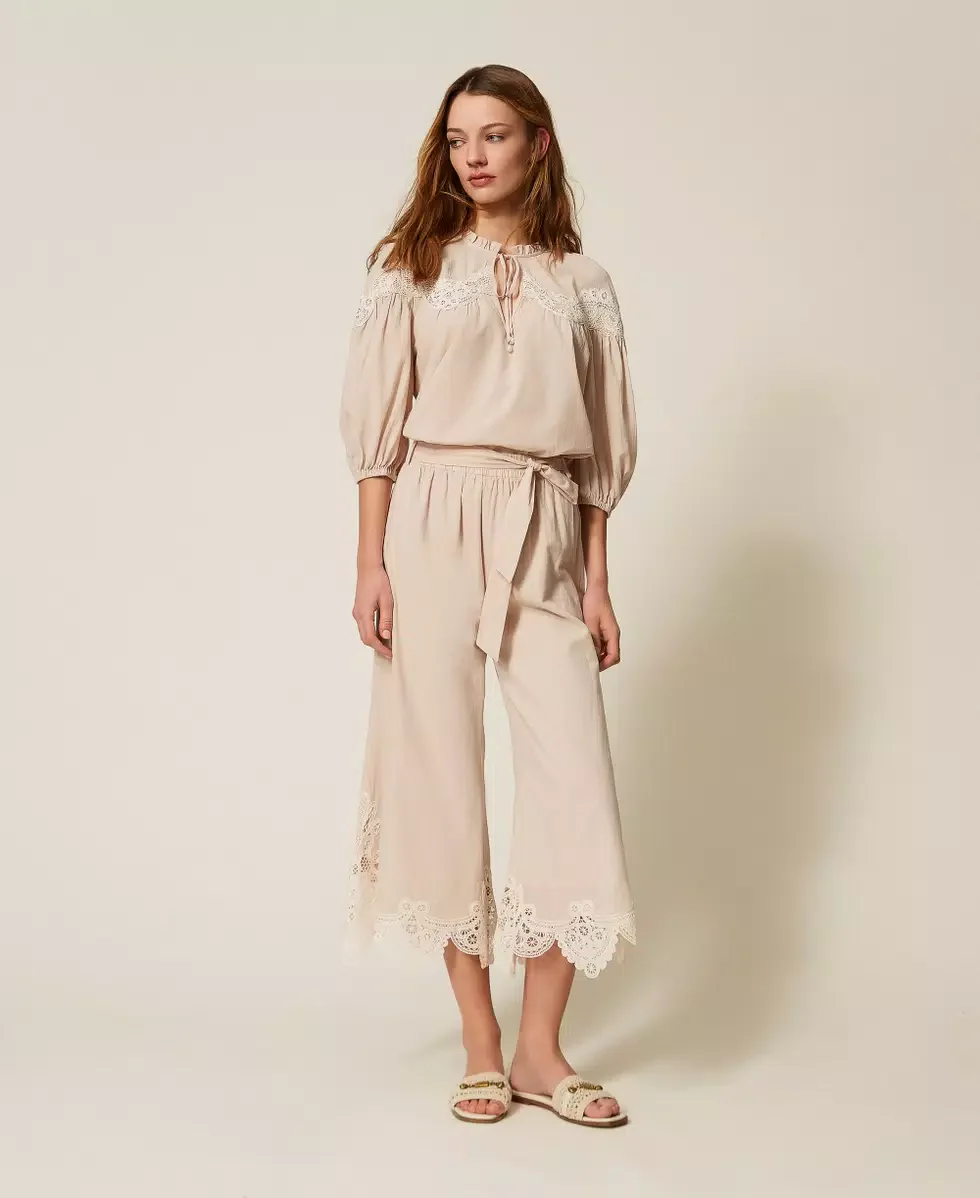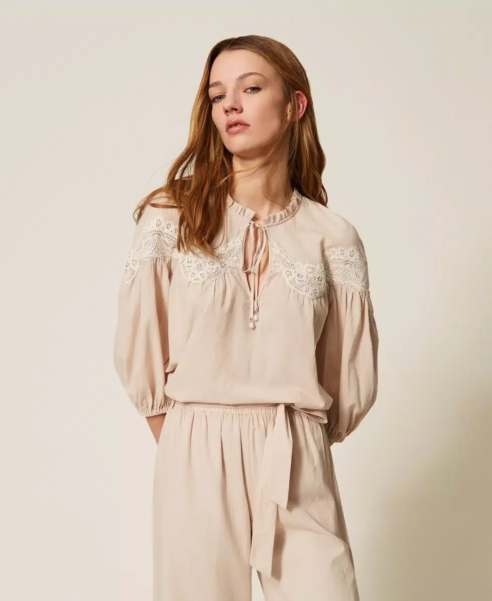 Blusa in mussola con macramè Twinset