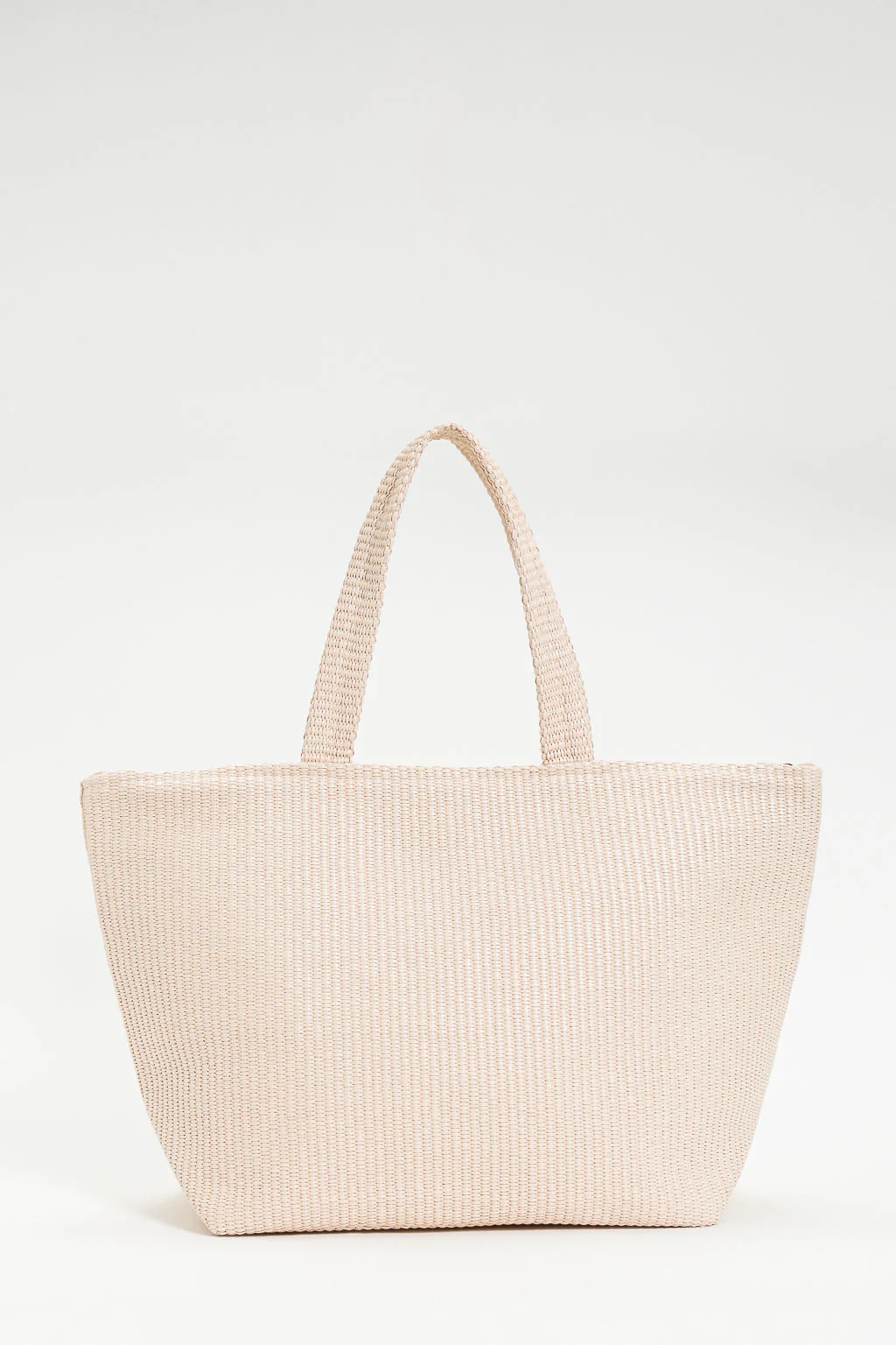 Bosa shopper intrecciata con logo, chiusura con zip.