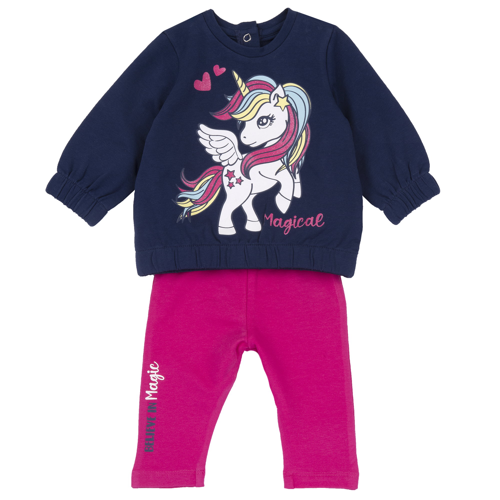 Completo 2 pezzi CHICCO invernale con minoabito blu unicorno e legging abbinato