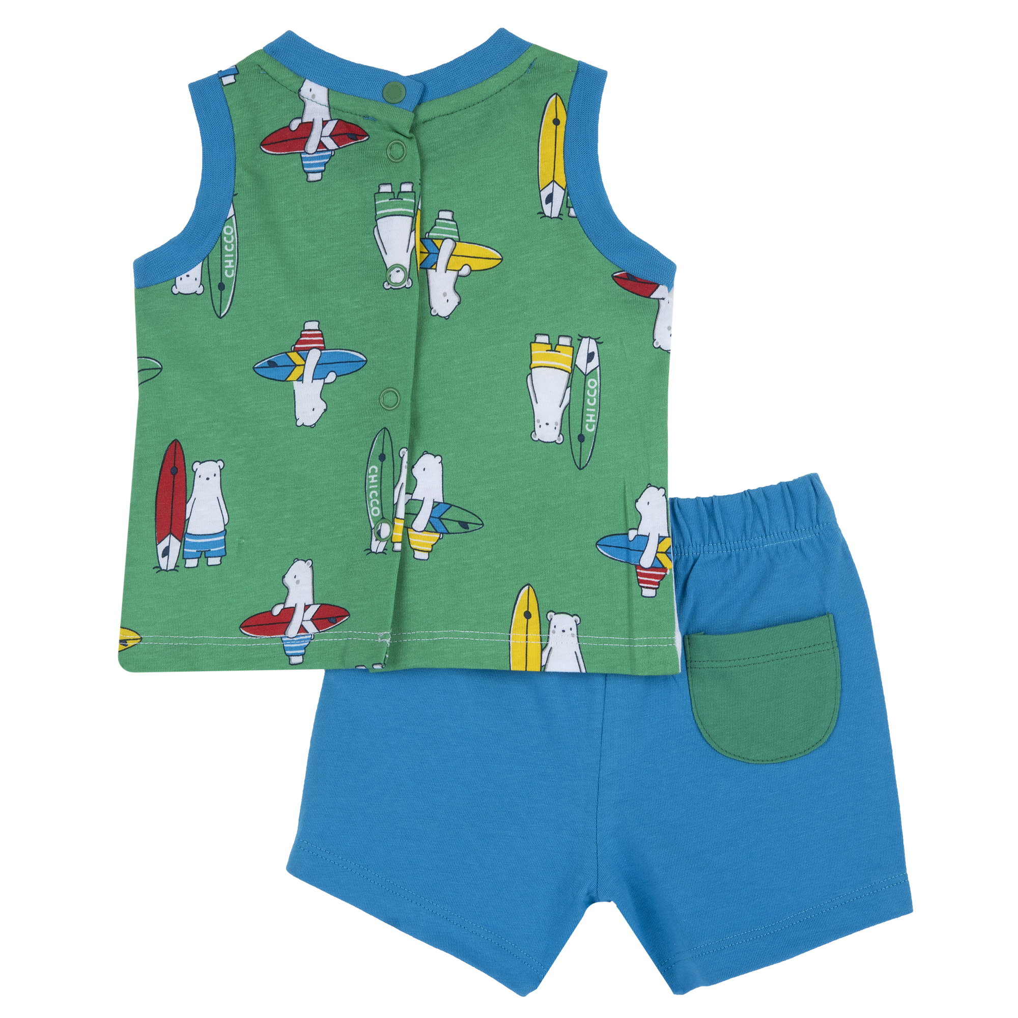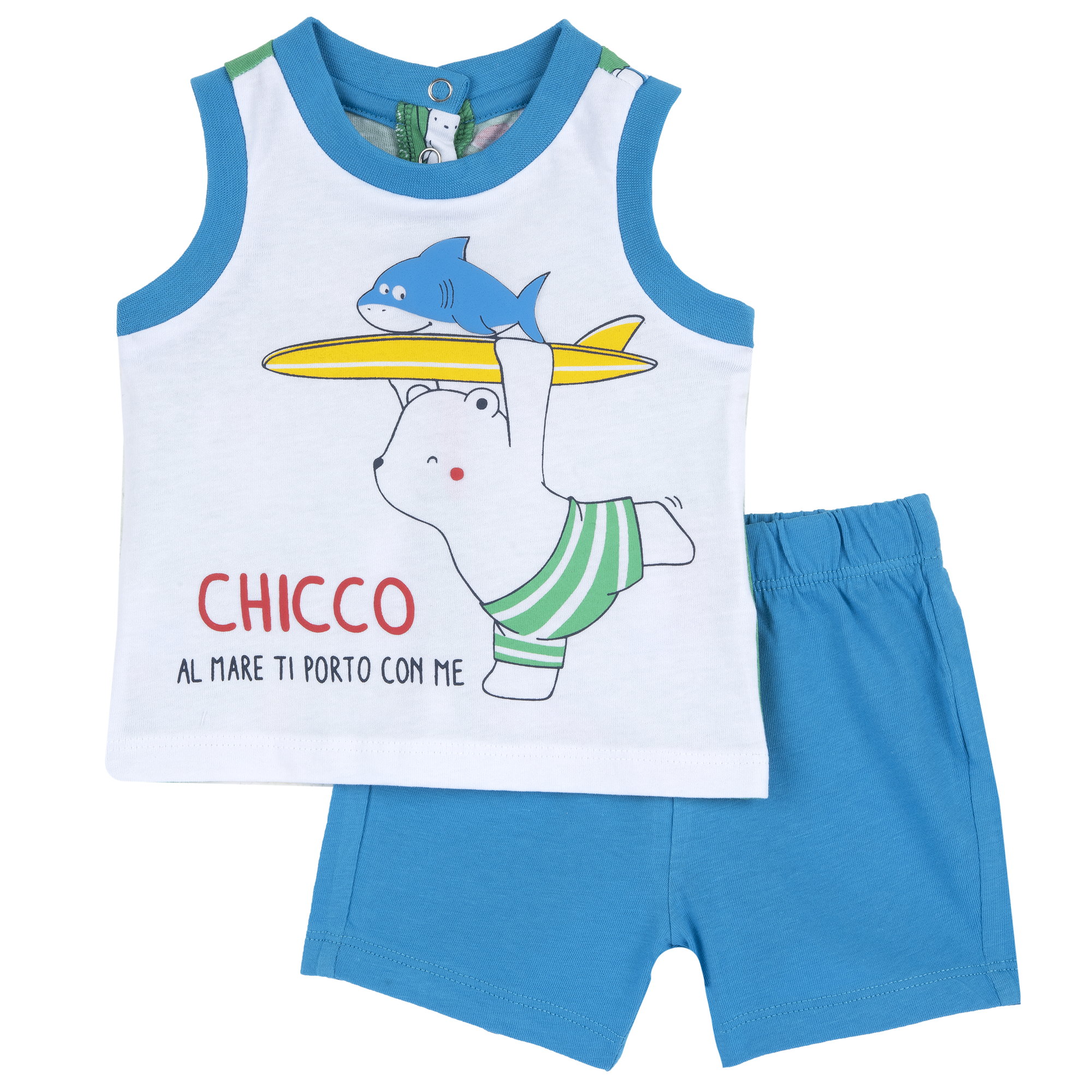 Completo corto in cotone CHICCO per bambino con canotta – orsetto e squaletto