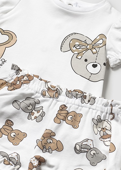 Completo estivo MAYORAL per neonata con t-shirt mezza manica e pantaloncino con conigliette e orsette