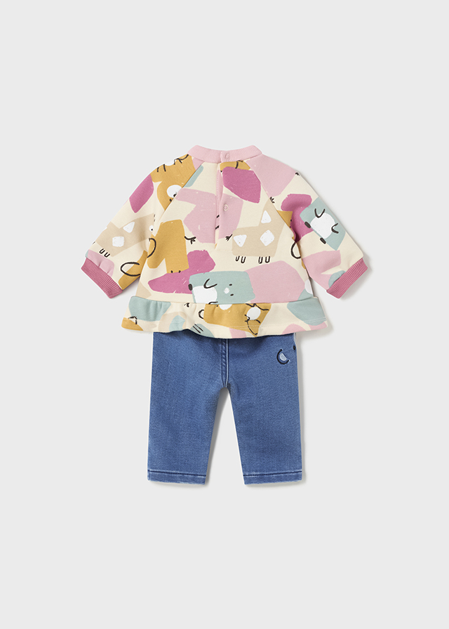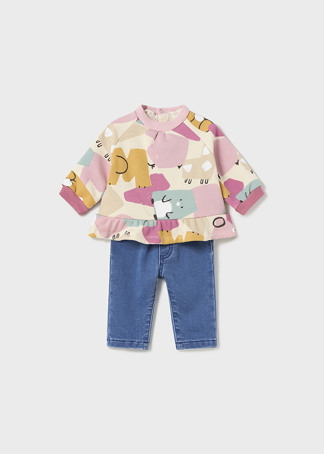 Completo MAYORAL invernale per neonata con felpa multicolore e pantalone felpa color jeans