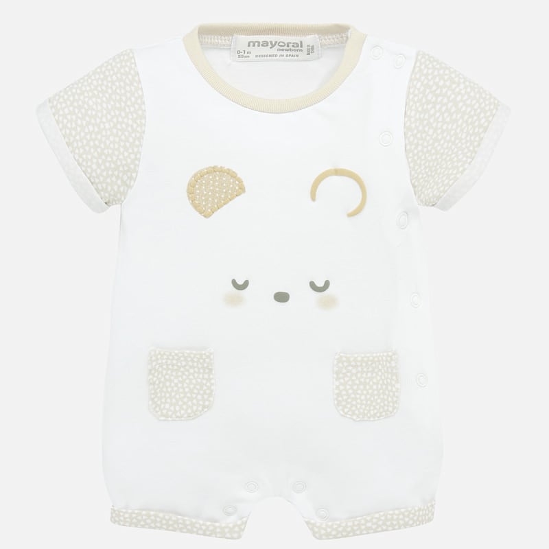 Pagliaccetto MAYORAL, manica corta con graziosa stampa centrale orsetto. In morbido tessuto elasticizzato, chiusura con bottoni a pressione. Pratico e comodo per tutta l’estate!ย Questo articolo รจ spedito all’interno della confezione della linea Newborn, ideale come regalo.