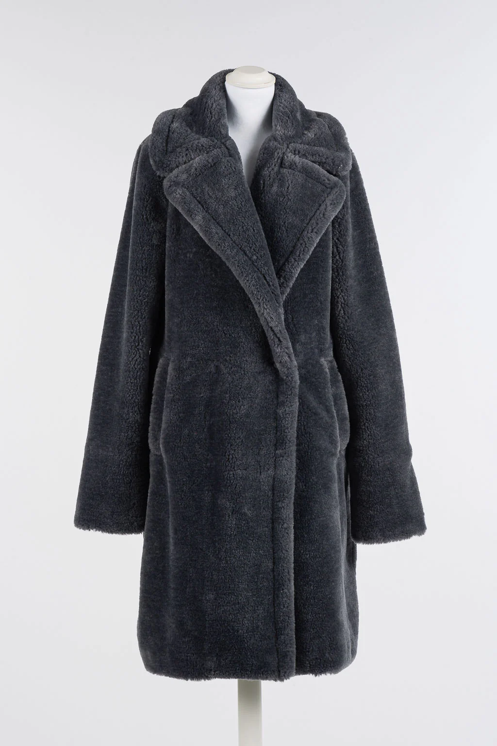 Cappotto doppiopetto in pelliccia sintetica con revers, tasche ai fianchi, chiusura con bottoni a pressione. Completerร i look invernali con un tocco di raffinatezza il cappotto doppiopetto in pelliccia sintetica, lunghezza sotto al ginocchio, con revers, bottoni a pressione ricoperti, tasche ai fianchi, foderato. Con gonna longuette e stivali per outfit urbani che non passeranno […]