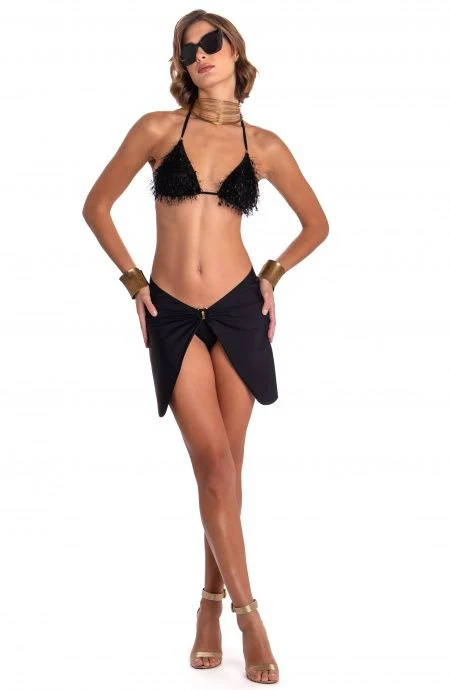 Gonna corta pareo in morbida lycra tinta unita con accessorio dorato nickel free. Ampia scelta di colori per essere perfettamente in tono con i bikini della collezione.