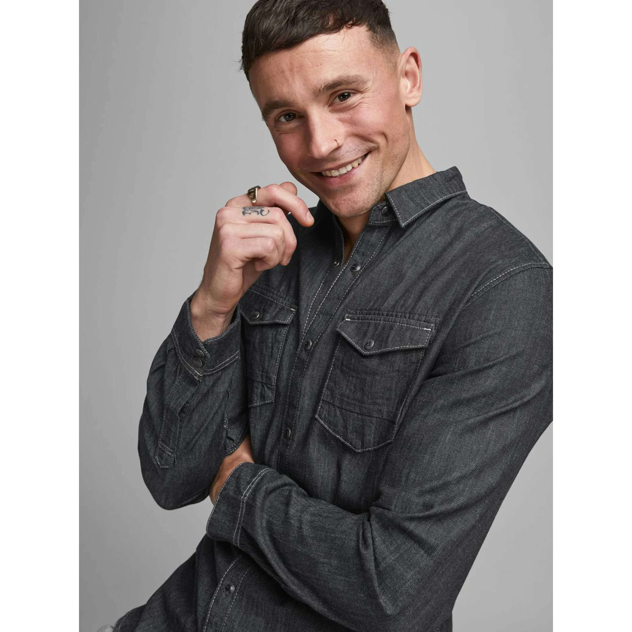 Jack & Jones Uomo Camicia Manica Lunga Slim Black Denim