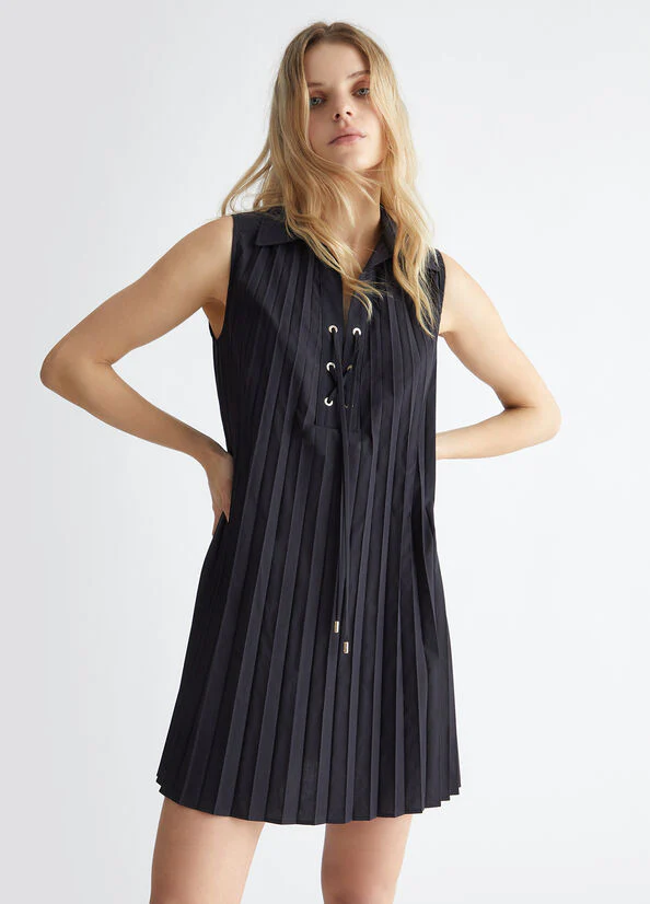 Liu.jo donna abito MA4361T3352 2222 Abito in popeline di misto cotone Collo a camicia Laccetti incrociati sul davanti Sorretto da spalline larghe