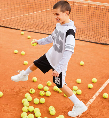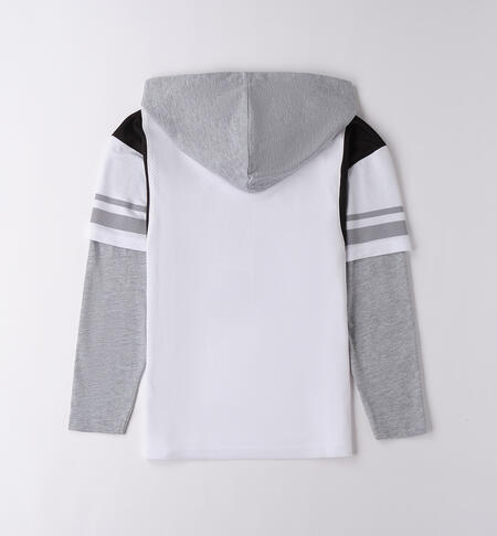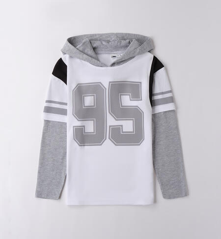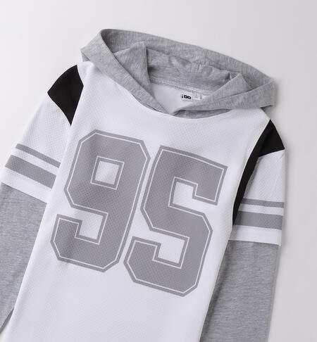 Maglietta IDO per ragazzo in manica lunga stile basket in cotone bianco e grigie