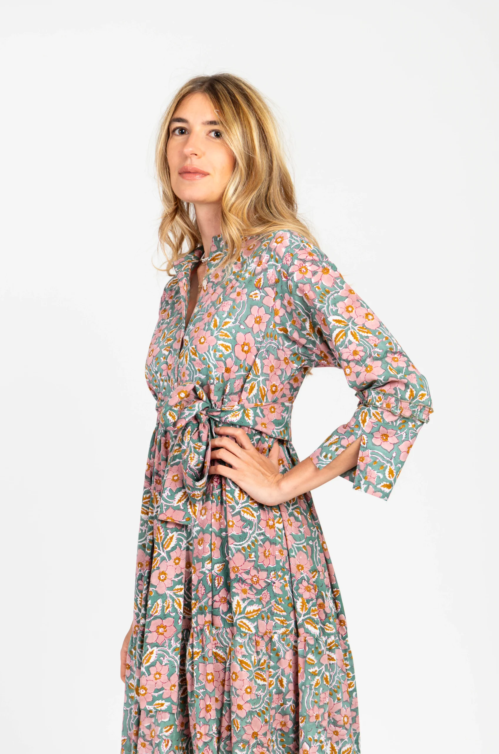 Meri Dress in 100% cotone stampato a mano con l’antica tecnica indiana Block Print. Misure: Taglia S-XS: larghezza spalle 40cm, seno 100cm, girovita 96cm, lunghezza manica 46cm, lunghezza vestito 135cm. Taglia M-L: larghezza spalle 43cm, seno 106cm, girovita 100cm, lunghezza manica 47cm, lunghezza vestito 135cm.