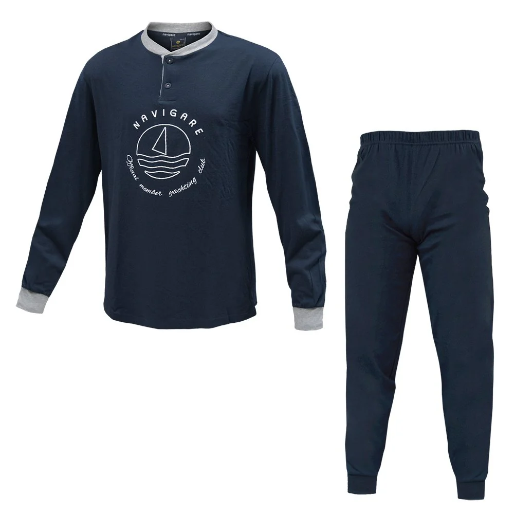 NAVIGARE Pigiama uomo caldo cotone serafino con polsini art. 14589