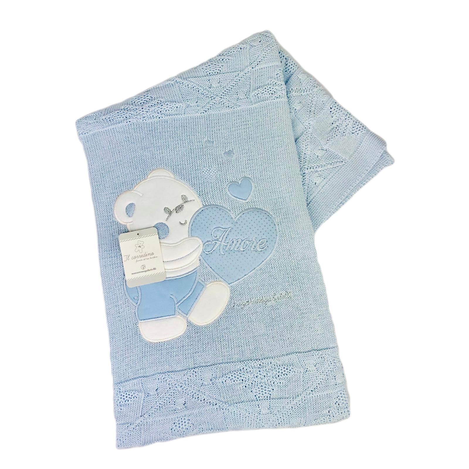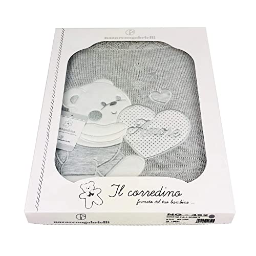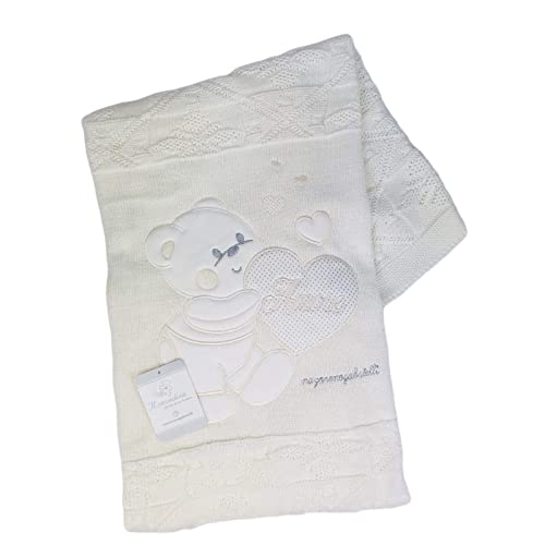- Qualitร Superiore: Realizzata in morbido filo di alta qualitร , questa copertina offre una sensazione di estrema delicatezza sulla pelle del neonato.