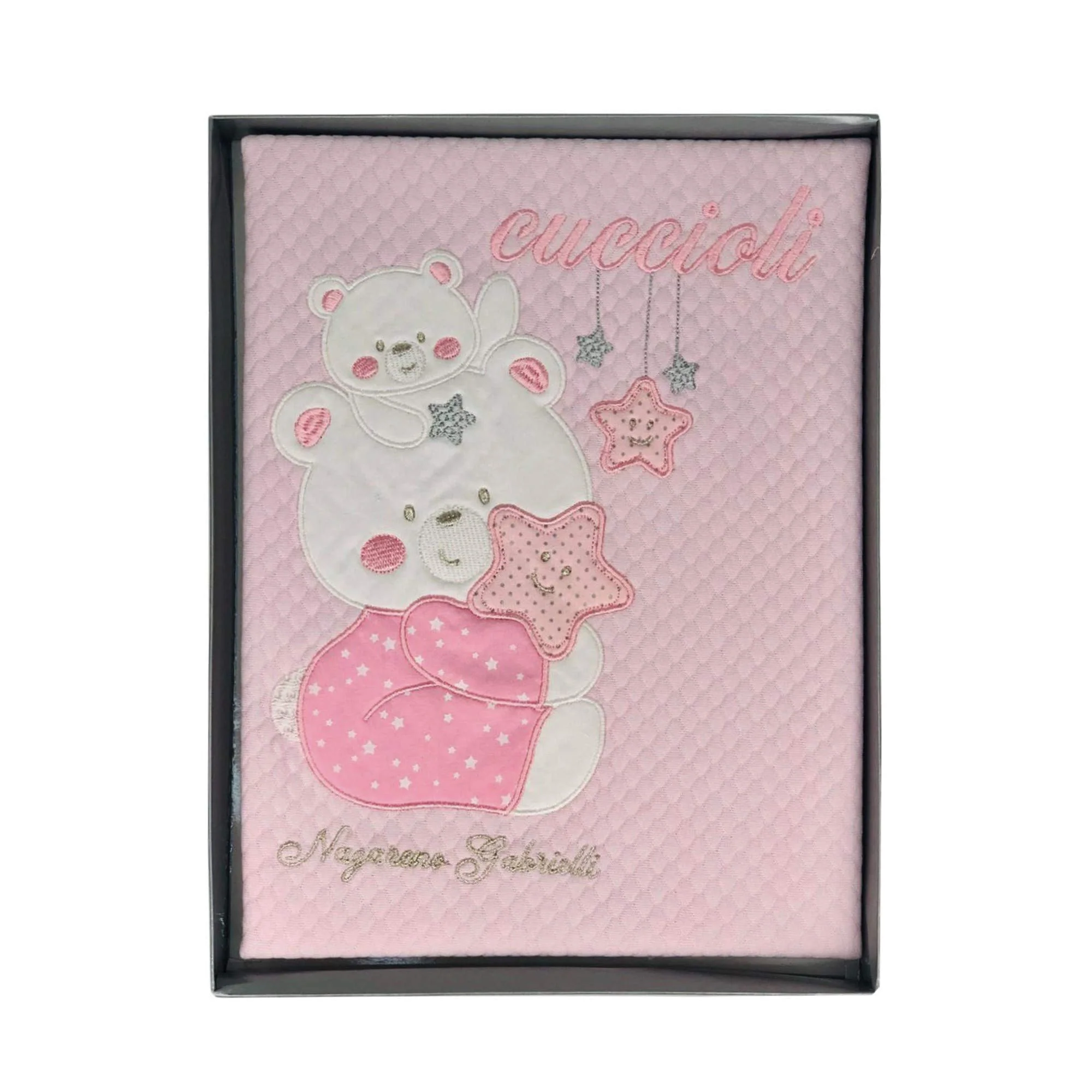 NAZARENO GABRIELLI Copertina neonato lettino/culla ricamo orsacchiotto Piquet estivo