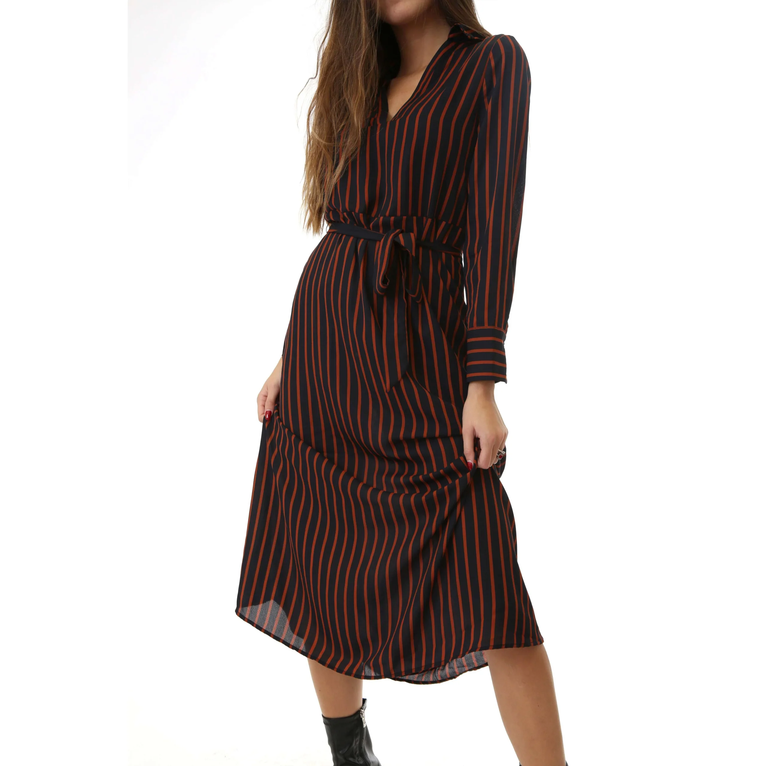 Only Donna Abito Chemisier Con Cintura Manica Lunga Striped Belted Petunia Navy