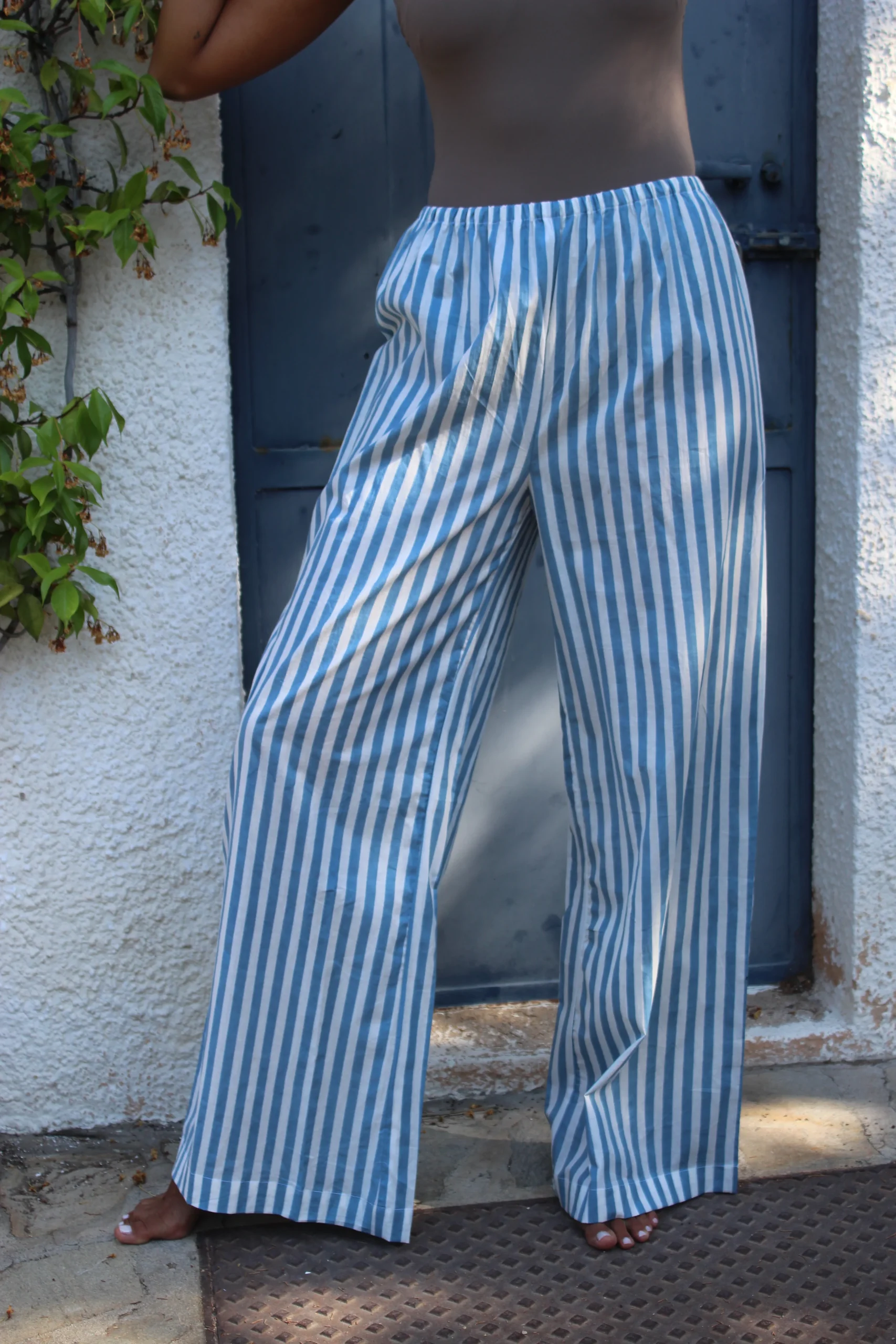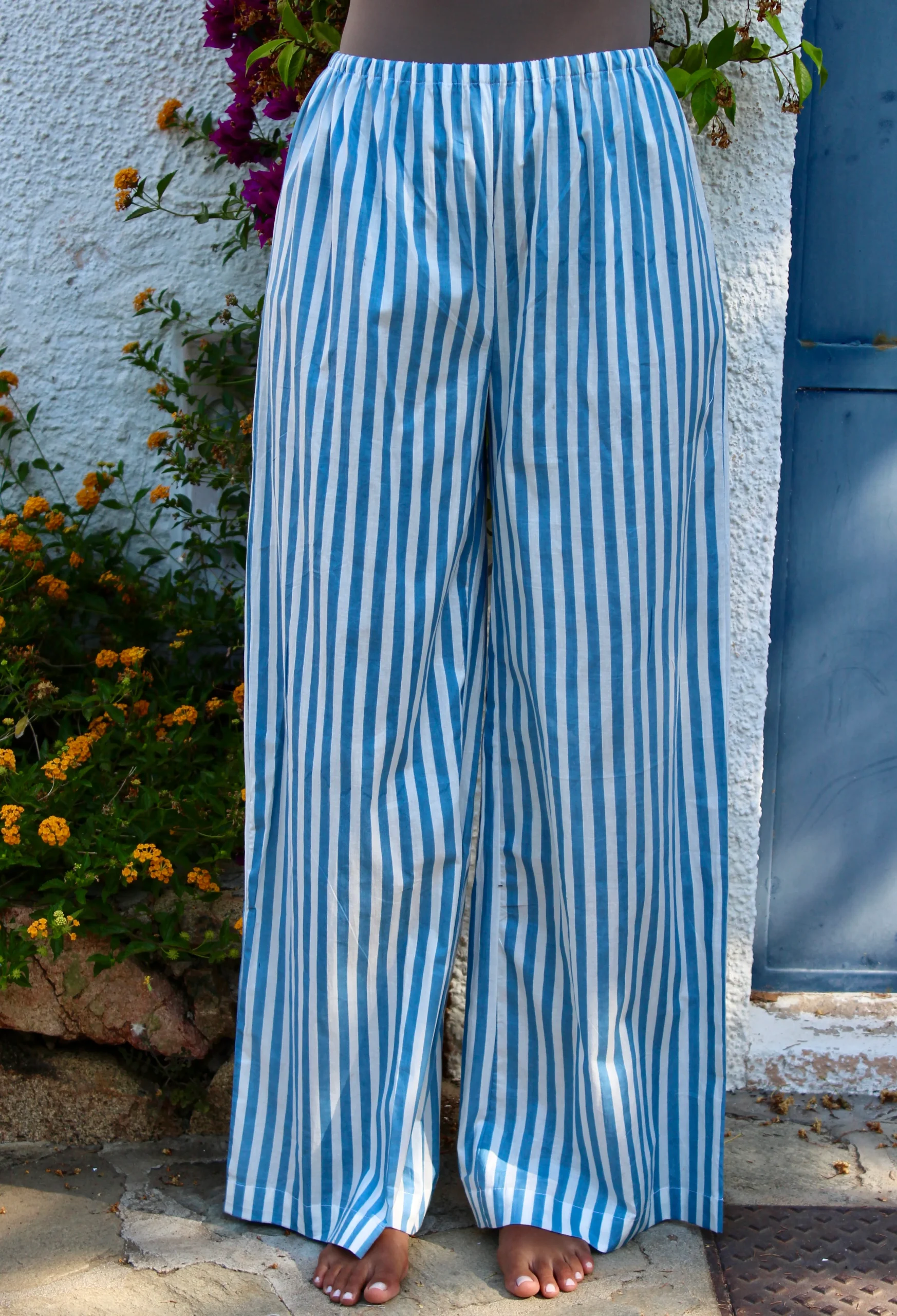 Pantalone lungo in cotone stampato a mano con l’antica tecnica indiana Block Print. Dotato di elastico in vita. Misure: Taglia XS-S: lunghezza 110cm, girovita da 68cm a 76cm. Veste una tg 38-40 Taglia M-L: lunghezza 110cm, girovita da 72cm a 80cm. Veste una tg 42-44 Lavare a 30ยฐ
