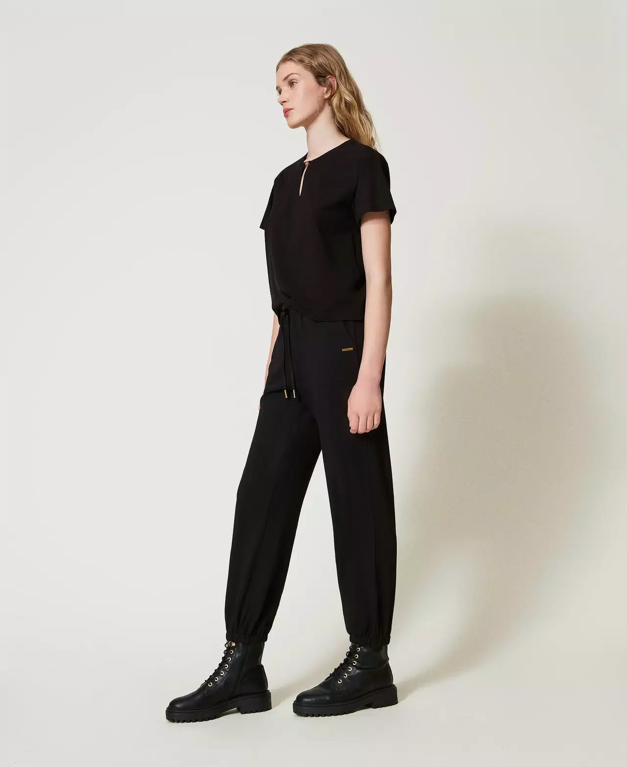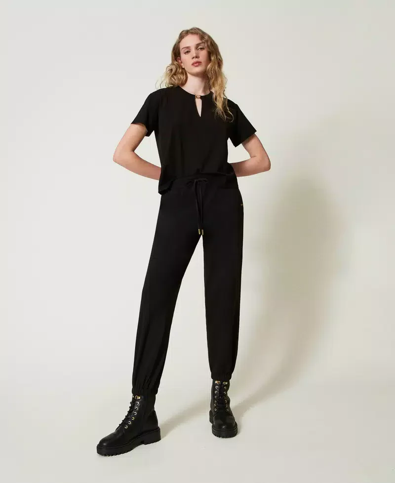 Pantaloni joggers in felpa con raso TWINSET