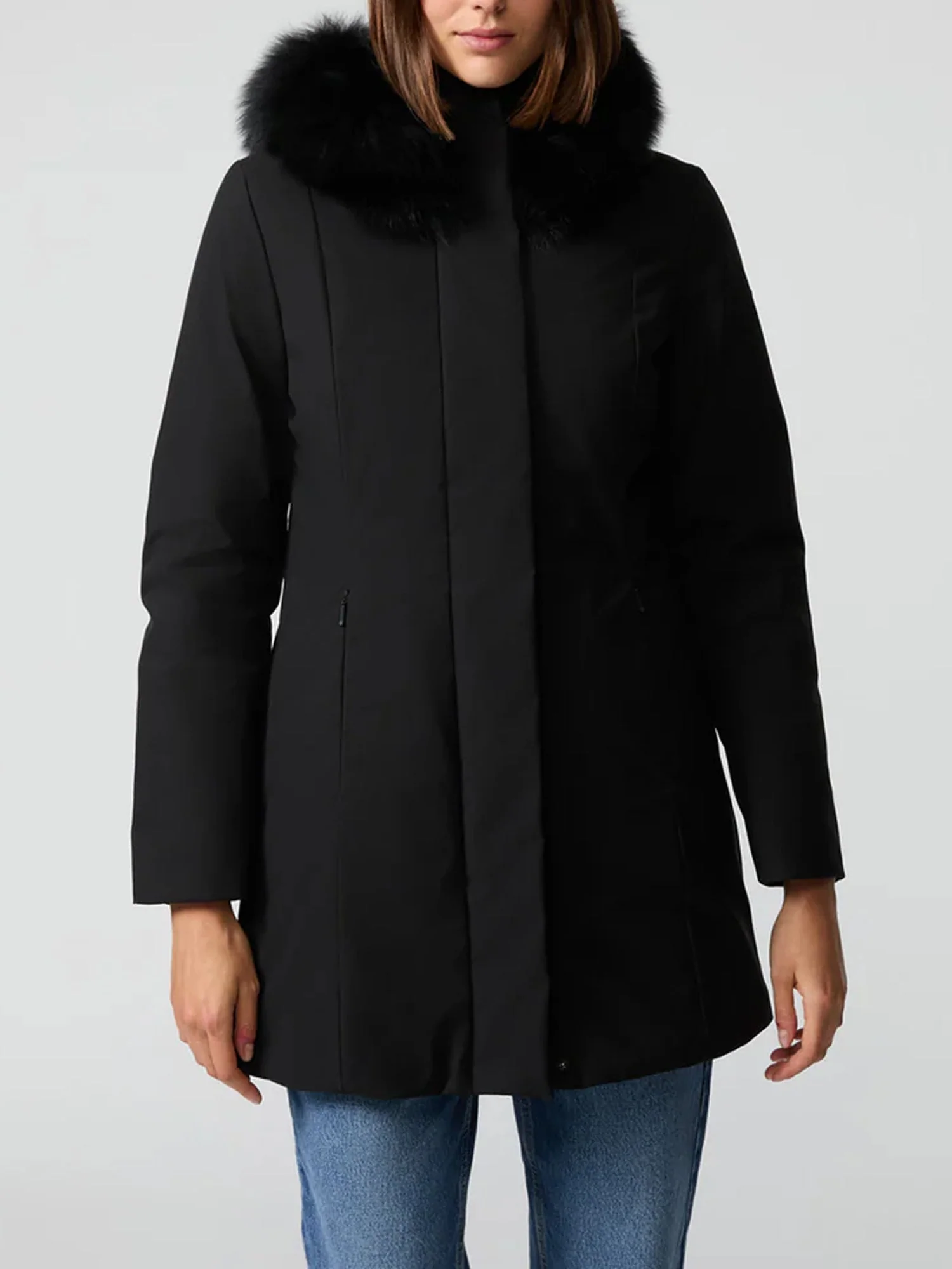 Parka da Donna composto in tessuto tecnico soft-shell, con pelliccia sul cappuccio, ideale per i giorni piรน freddi della stagione invernale. Imbottitura termica RefrigiWearยฎ Thermal Padding 100% animal-free ideale per affrontare le temperature fredde. Look pulito e moderno. Super-versatile, ideale per qualsiasi look.