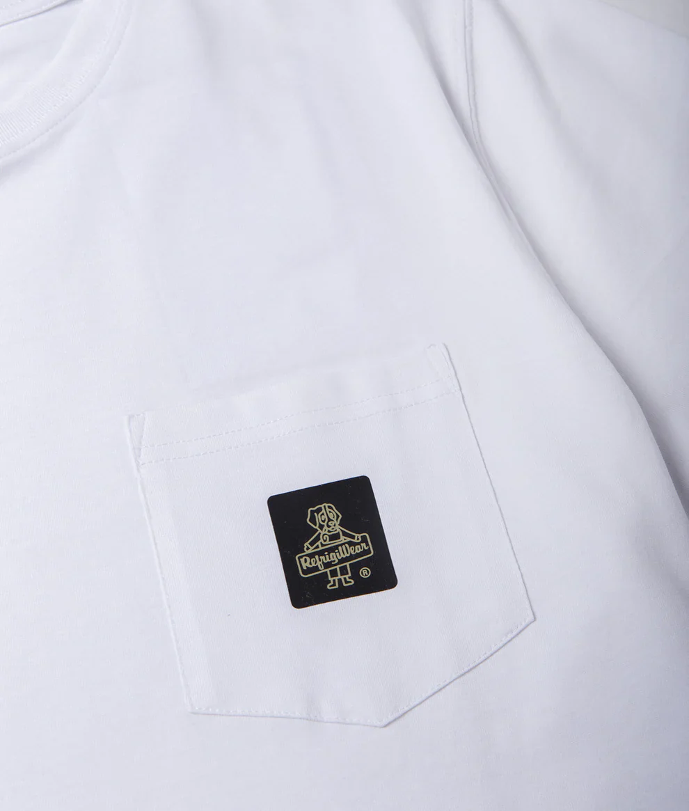 Refrigiwear uomo t-shirt Pierce RM0T22600JE A00010 Tessuto in Cotone Ultra-Leggero e Traspirante Vestibilitร Leggermente Ridotta Taschino sul Petto con Logo Transfer COMPOSIZIONE 100% COTONE