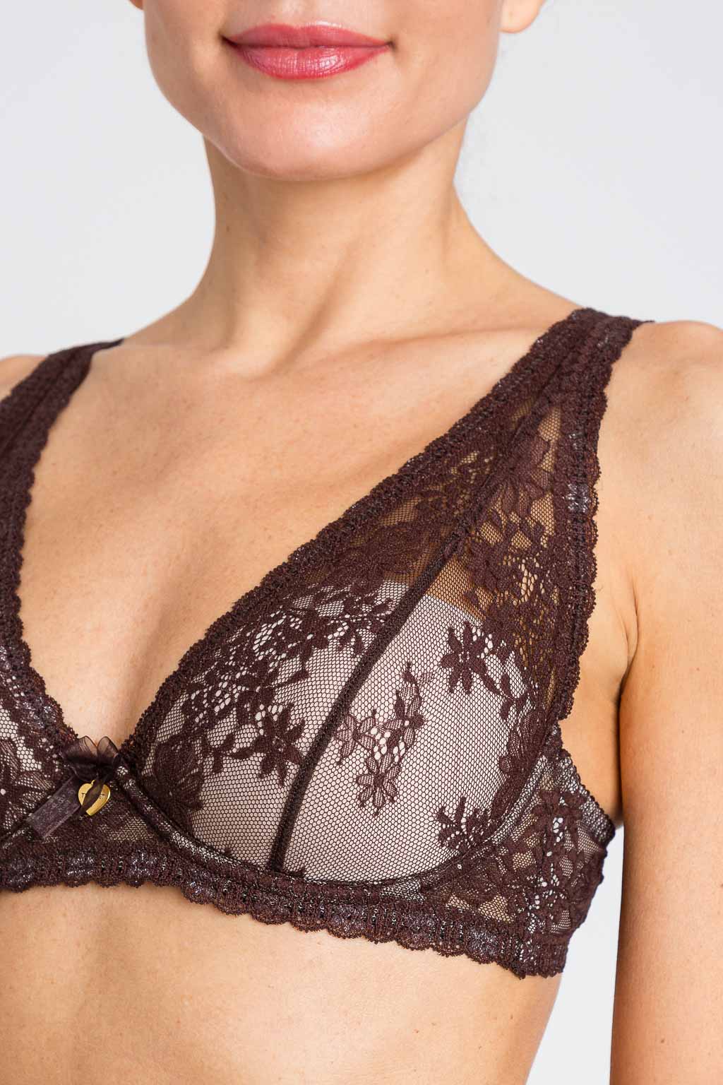 Reggiseno bralette in pizzo a motivo floreale smerlato. ร imbottito con coppe fisse e ha fodera in tulle, ferretto, stecche laterali, spalline larghe davanti e in elastico regolabile logato sul retro, chiusura a due ganci, fiocco in organza e logo a cuore in metallo al centro delle coppe. Codice prodotto: 252LI6B33 Black Chocolate- Nero 87% […]