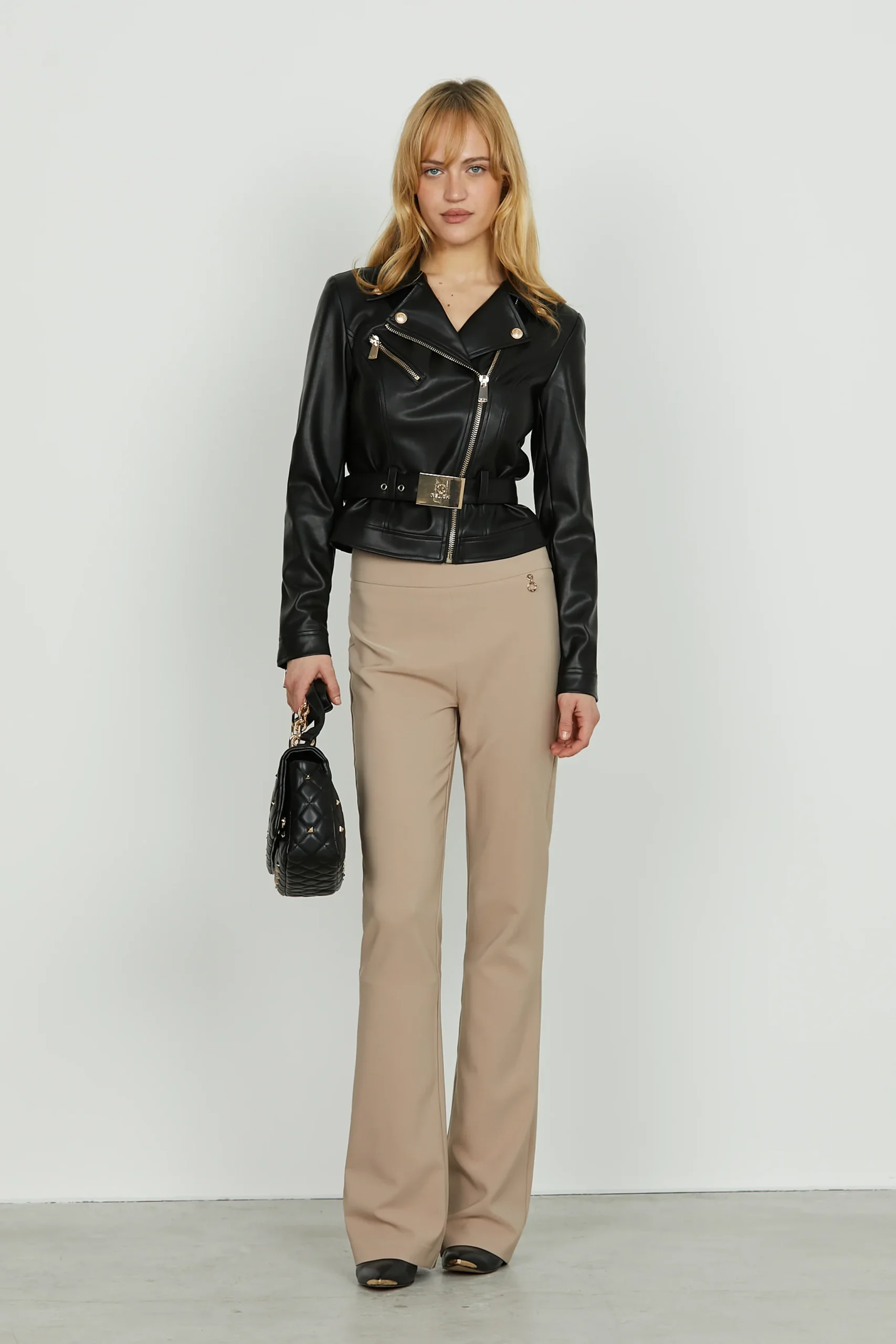 Giubbino AUSTYN manica lunga chiodo con zip piรน cintura ecopelle