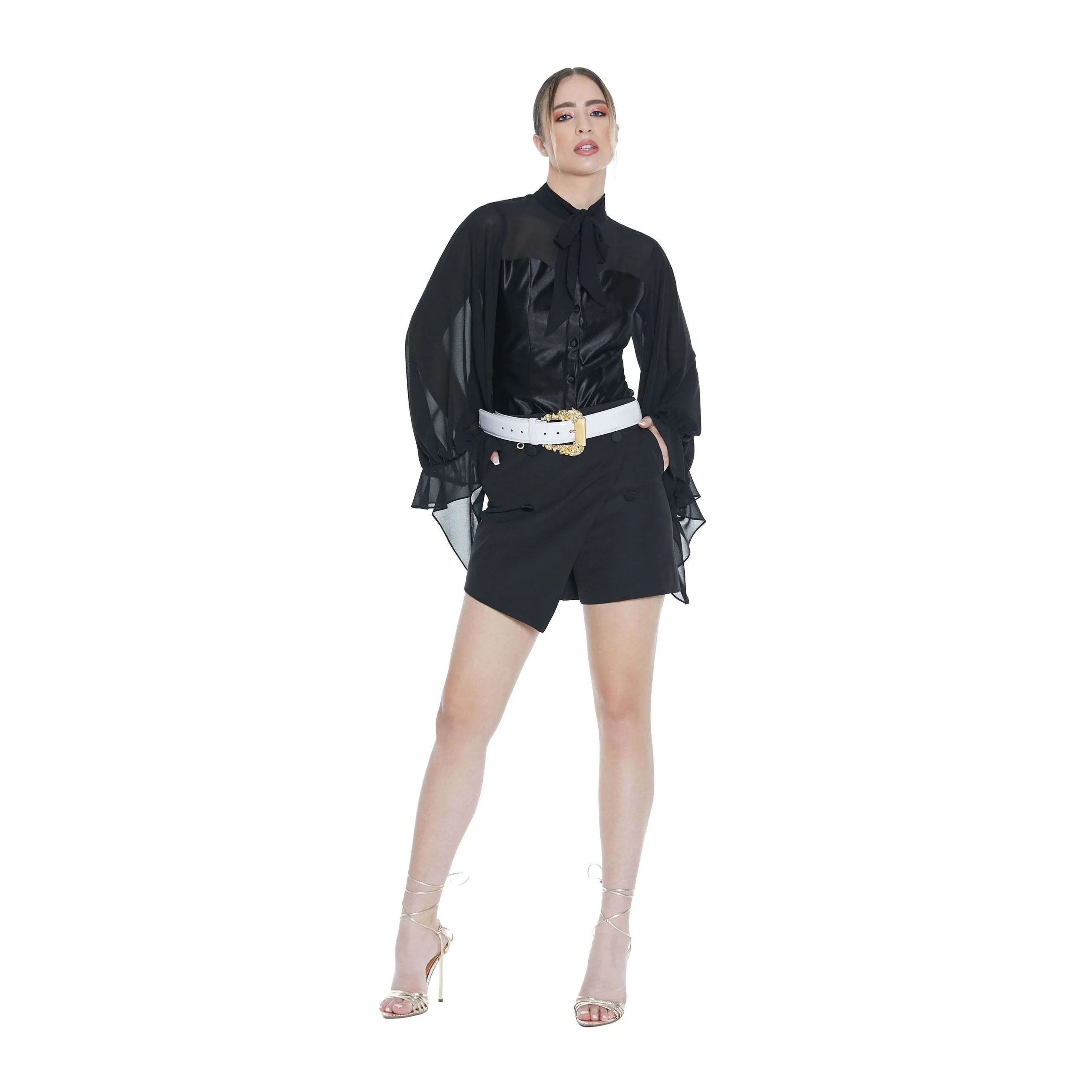 Lo short ha il pannello davanti simile ad una gonna e dona al look un sapore sia casual che sexy.