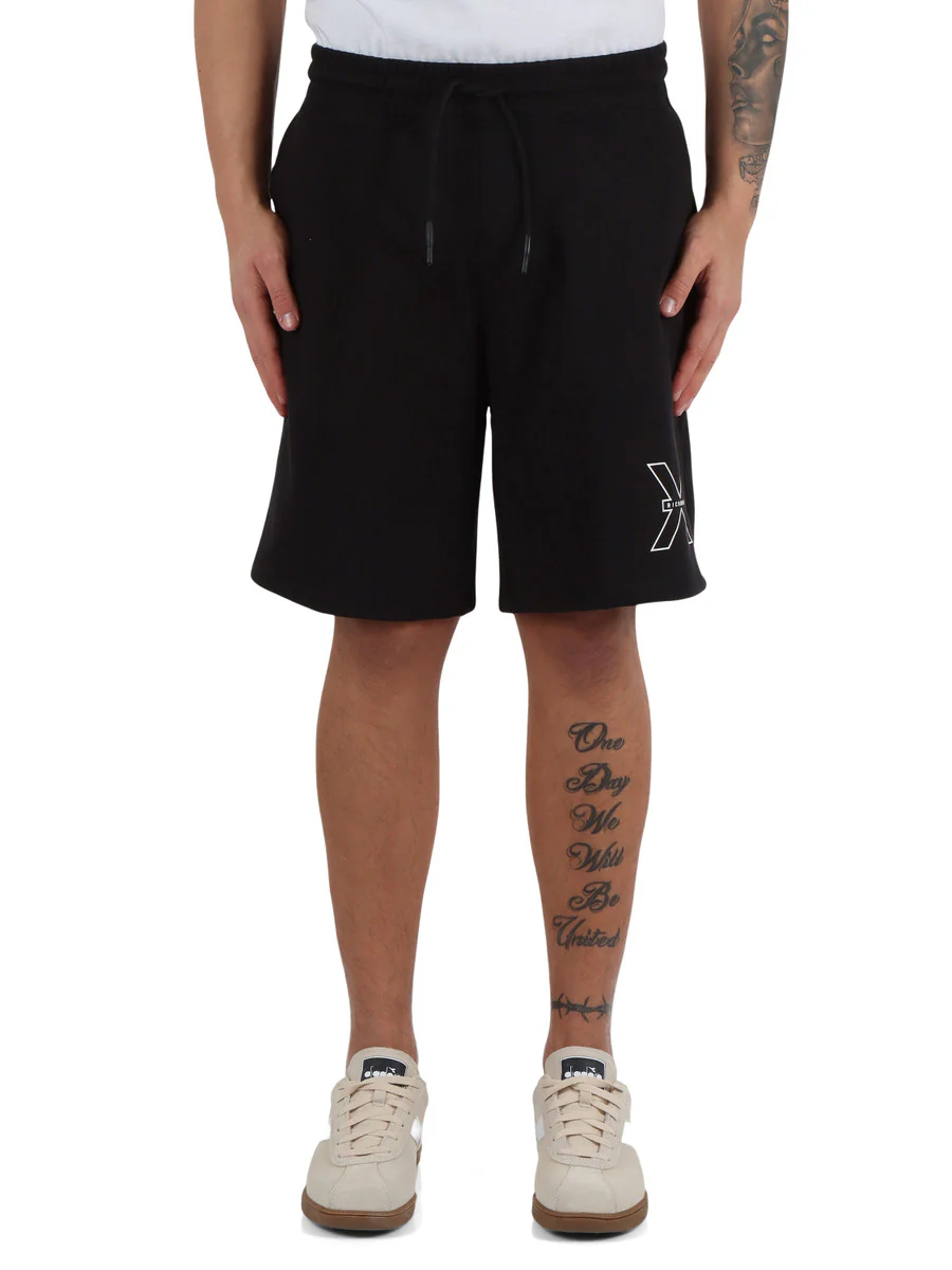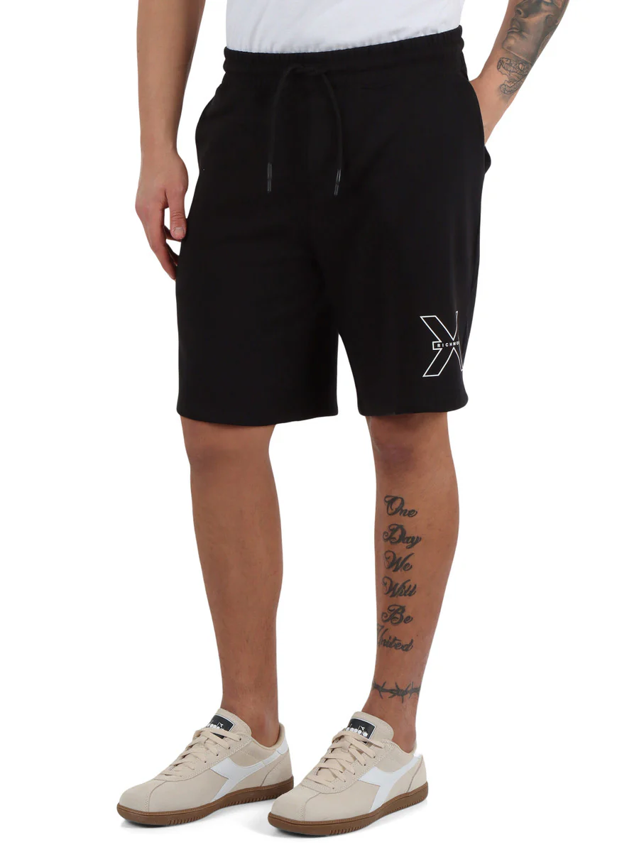 Richmond uomo bermuda Fleece Midere UMP25116BE Black vita elasticizzata con coulissetasche frontalistampa logo a rilievogarzato