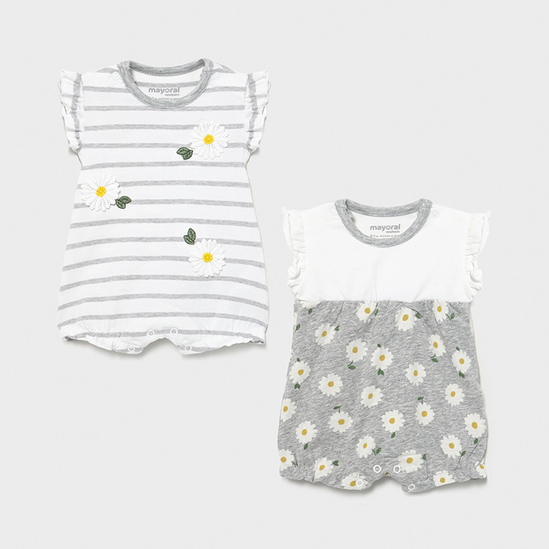 Set 2 tutine corte MAYORAL per neonata bianco e grigio tema margheritine