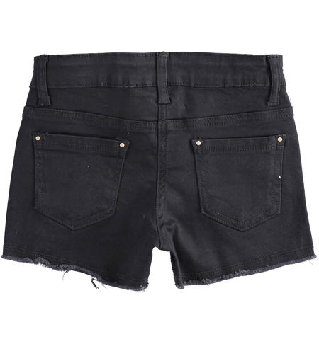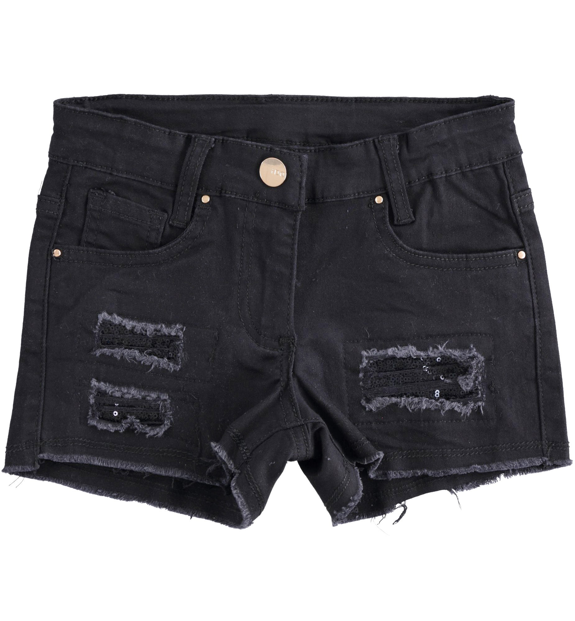 Short IDO in tessuto twill di cotone, color nero con strappi e paillettes