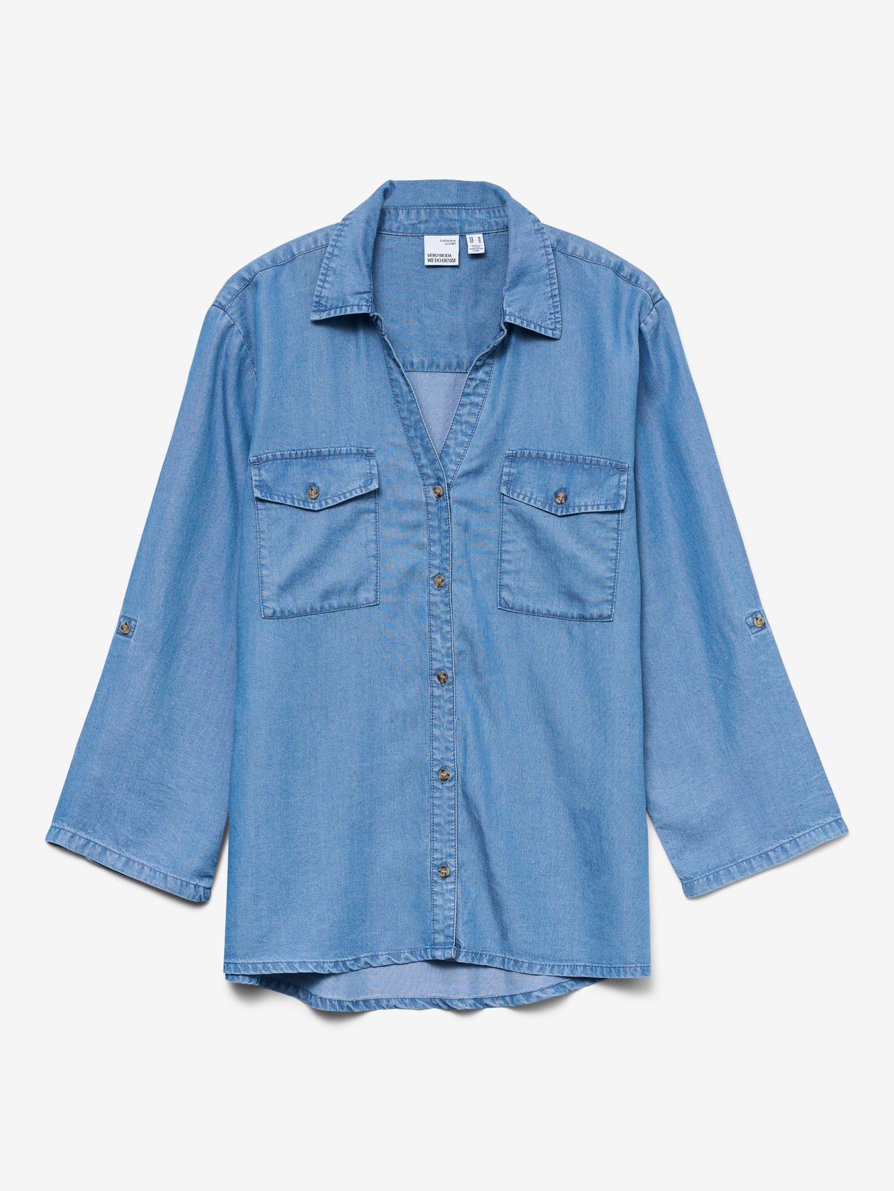 Vero Moda donna camicia Sleeve 10304863 Medium Blue – Collo : Collo Camicia– Manica : Maniche 7/8– Polsini : Polsini risvoltati– Chiusura : Chiusura con bottoni– Tasche : Tasche sul petto– Vestibilitร : Loose Fit