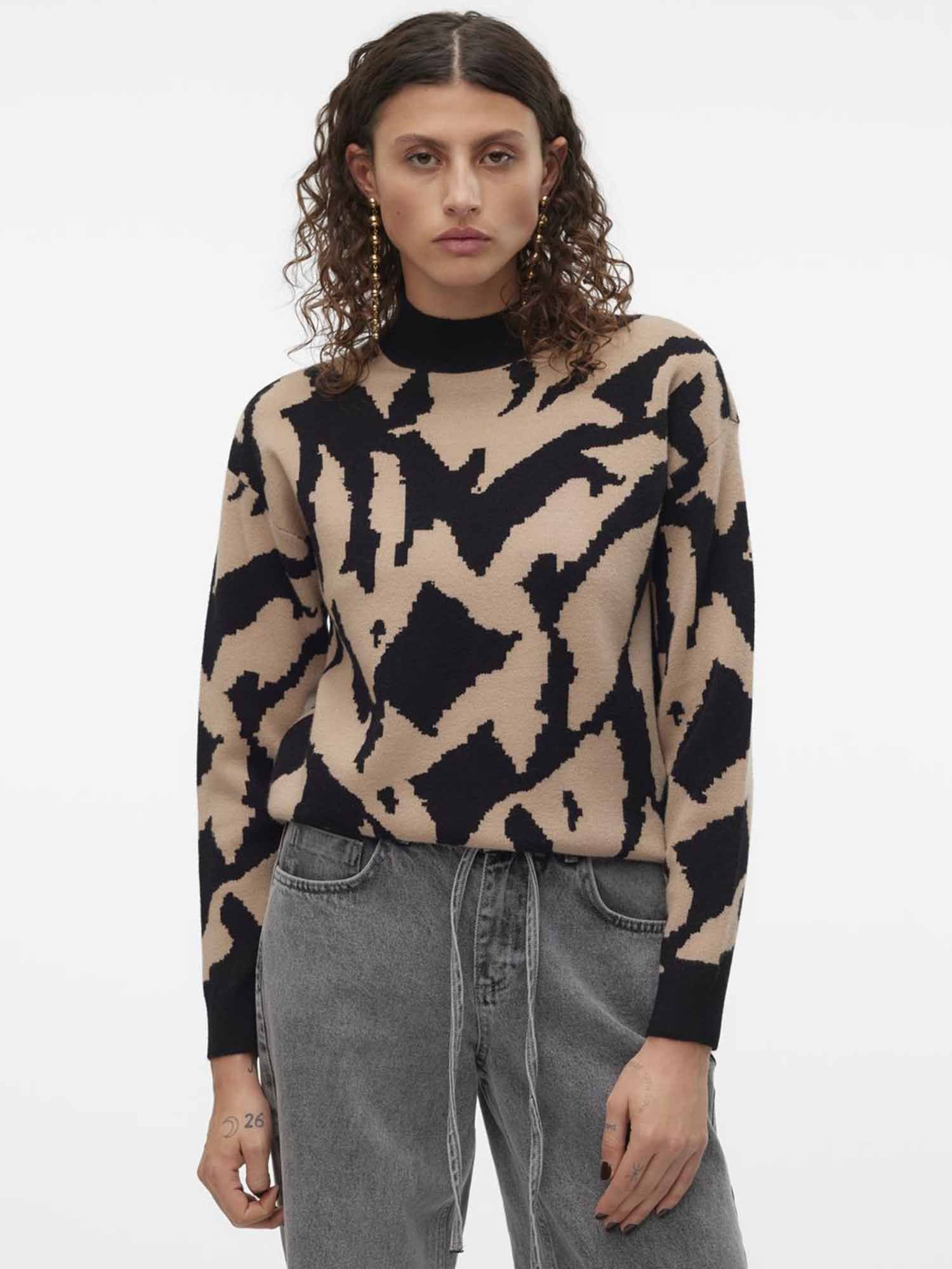 Vero Moda donna maglia gold new art black silvermink Composizione:50% viscosa, 28% poliestere, 22% nylon