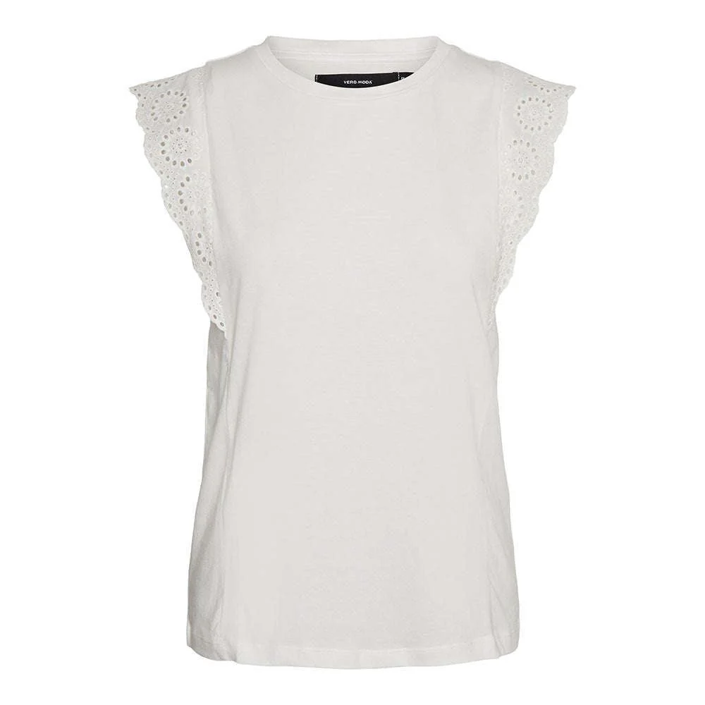Vero Moda Donna T-shirt Hollyn Noos Bianco10259908 Parte superiore dettagliata.Maniche ad aletta.Scollo tondo.Dettagli ricamati sulle maniche.Cuciture ondulate sulle spalle.Vestibilitร regolare.Lunghezza anteriore:61 cm una taglia S.Top dettagliato con dettagli ondulati sulle spalle, scollo tondo e maniche ad aletta.Indossalo con una gonna di jeans per un look disinvolto.In forma:Vestibilitร regolare.Composizione:100% cotone.