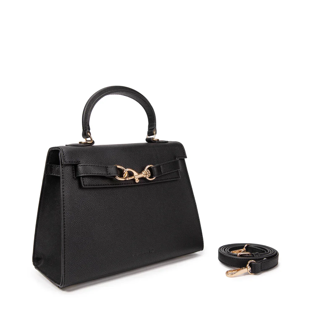 Vivienne D. donna borsa Mini Busy V206 Nero Mini bag in ecopelle martellata con logo VIVIENNE D finitura dorata Chiusura con automatico Manico singolo Tracolla regolabile Laccio con moschettone decorativo Dimensioni: 28x27x13