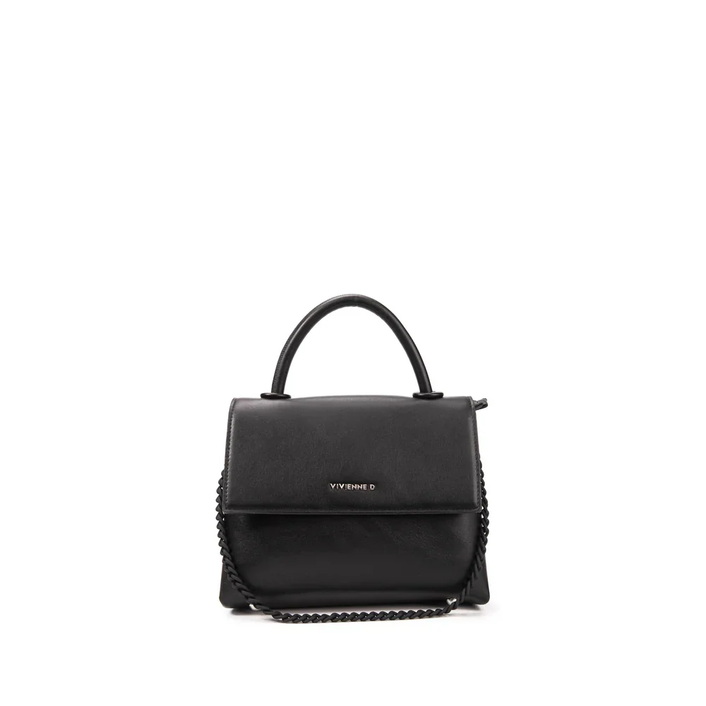 Mini bag in ecopelle liscia, due tasche interne di cui una con zip, logo VIVIENNE D finitura argentata