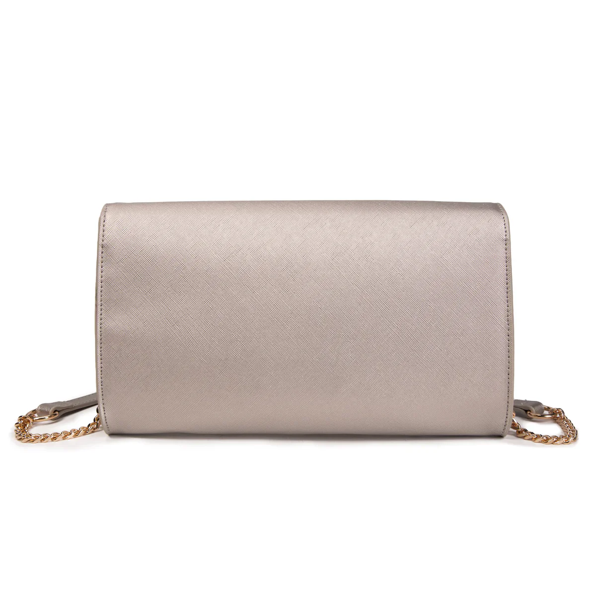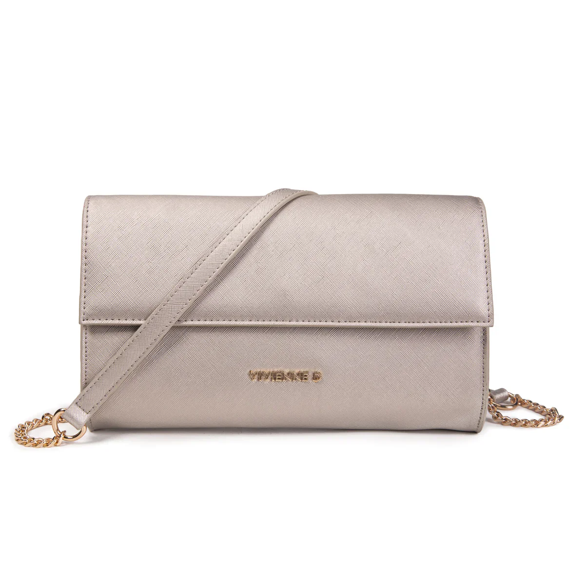 Vivienne D. donna borsa Mini Saffiano V164 Argento Dimensioni: 27x13x3 ca Pochette in saffianoChiusura con automaticoTracolla a catena con parte in ecopelleLogo VIVIENNE D finitura dorataFodera 100% poliestere