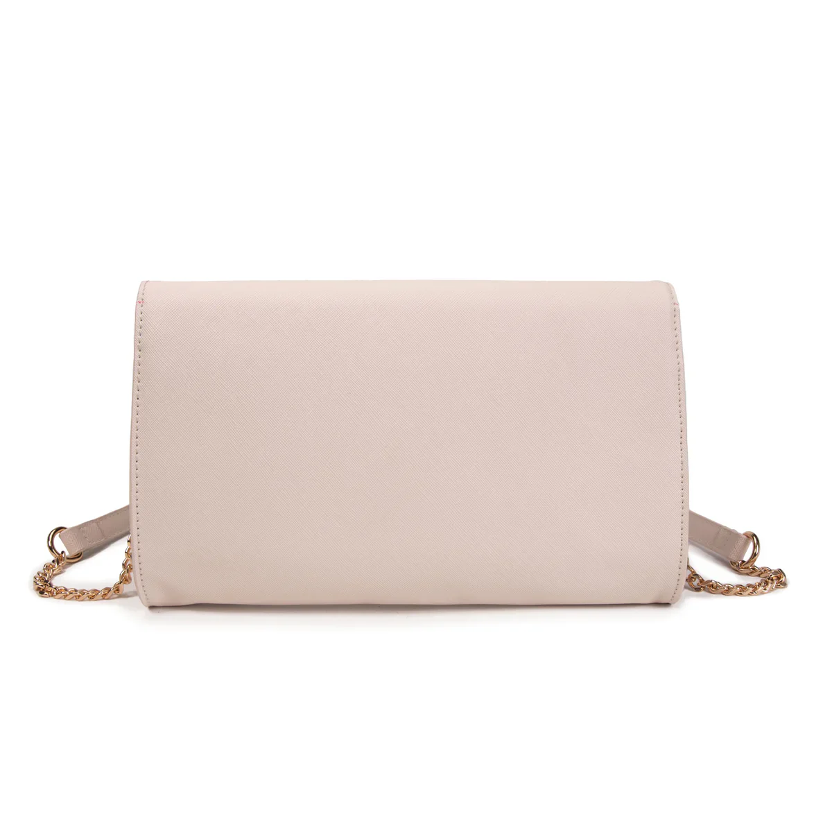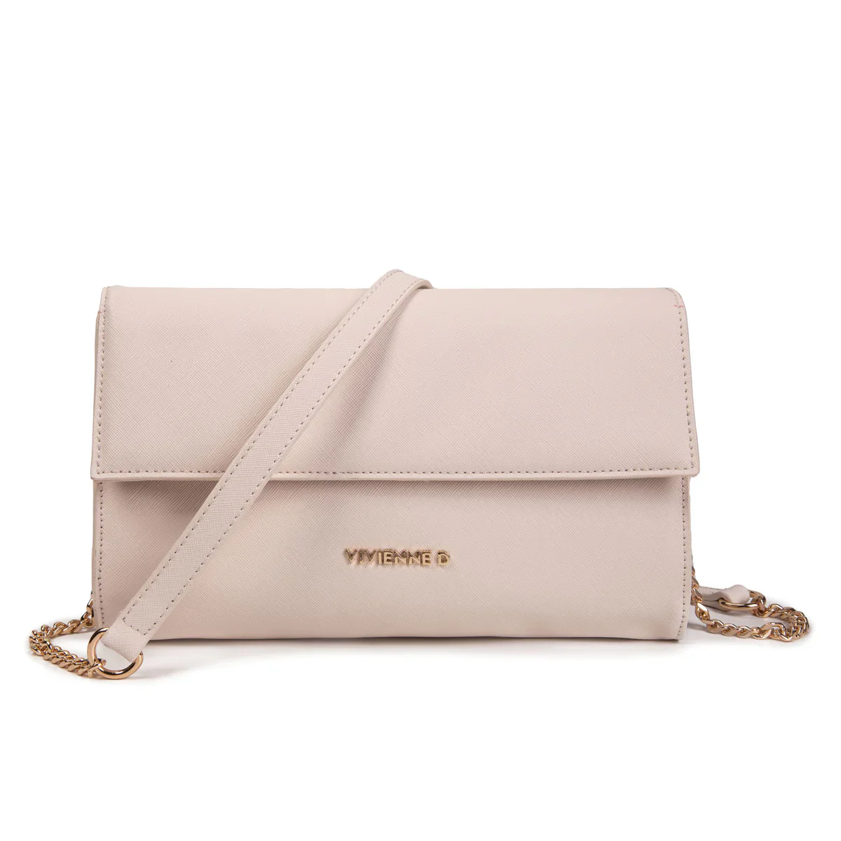 Vivienne D. donna borsa Mini Saffiano V164 Beige Dimensioni: 27x13x3 ca Pochette in saffianoChiusura con automaticoTracolla a catena con parte in ecopelleLogo VIVIENNE D finitura dorataFodera 100% poliestere