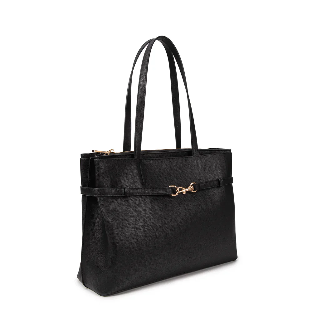 Vivienne D. donna borsa Shopper Busy V203 Nero Shopper in ecopelle martellata con logo VIVIENNE D finitura dorata Chiusura con cerniera Doppio manico Laccio con moschettone decorativo Dimensioni: 38x27x13