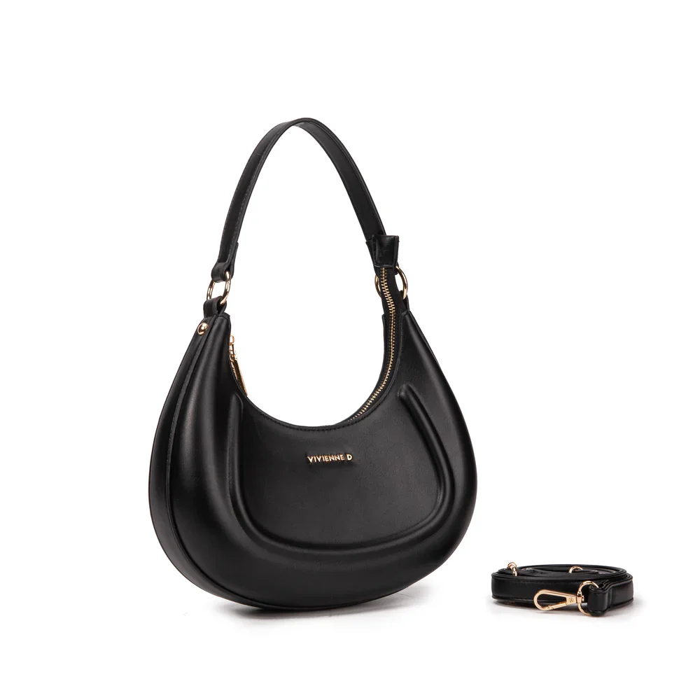 Vivienne D. donna borsa Sugar V220 Nero Borsa in ecopelle liscia con logo VIVIENNE D finitura dorata Chiusura con cerniera Manico singolo Tracolla in ecopelle Dimensioni: 26x14x8